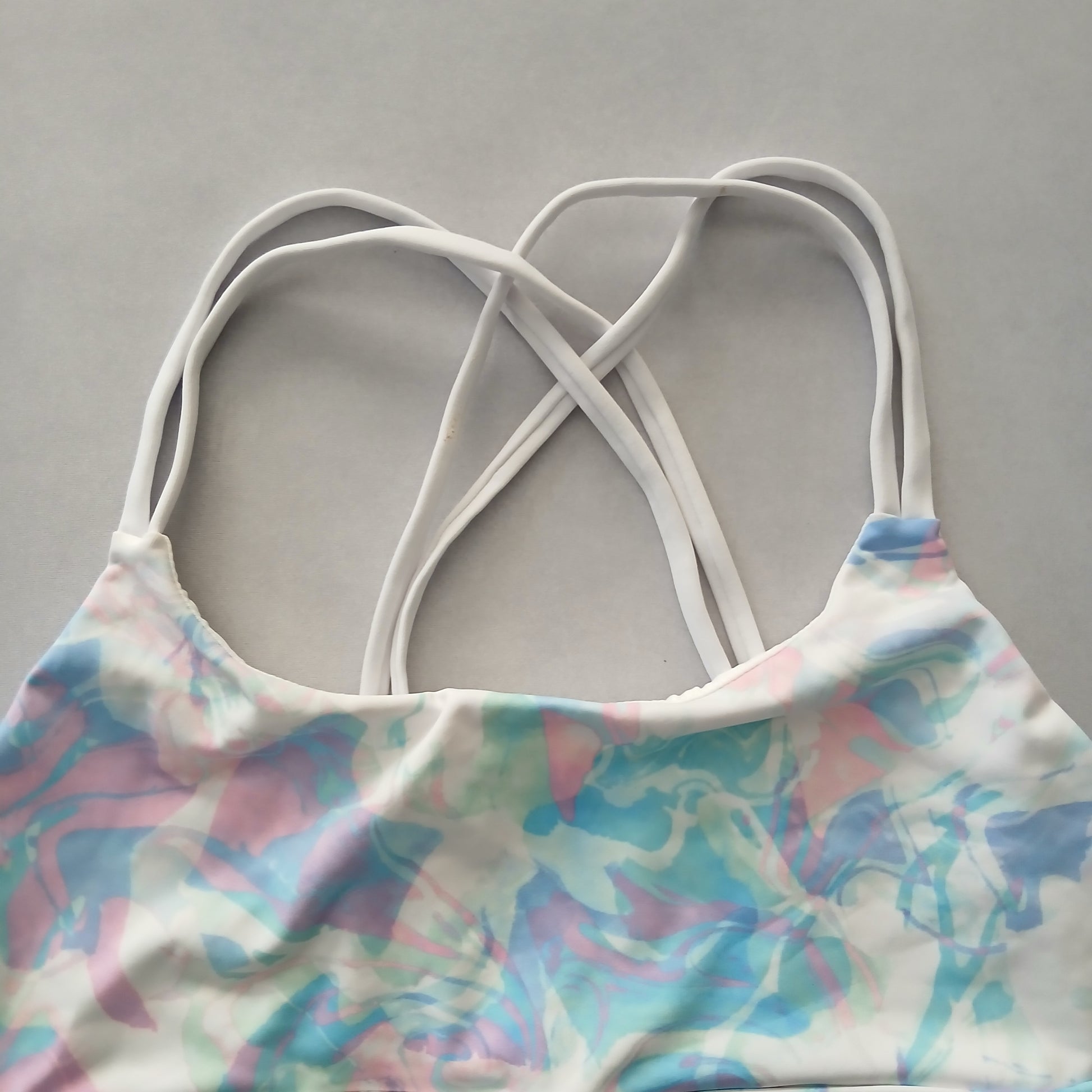 White Y2K VTG Sports Bra Boho Tie Dye Activewear Yoga Workout Top Large