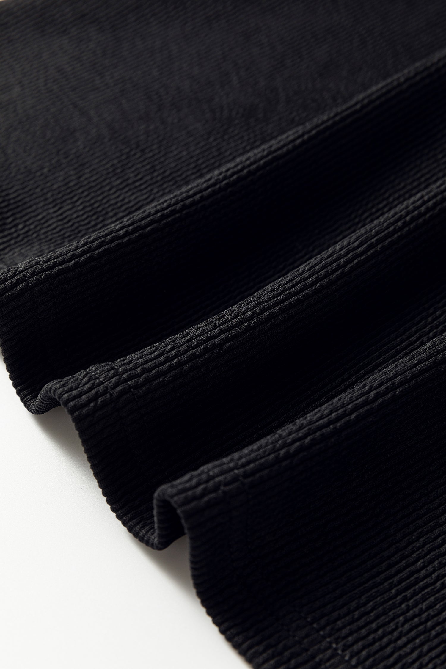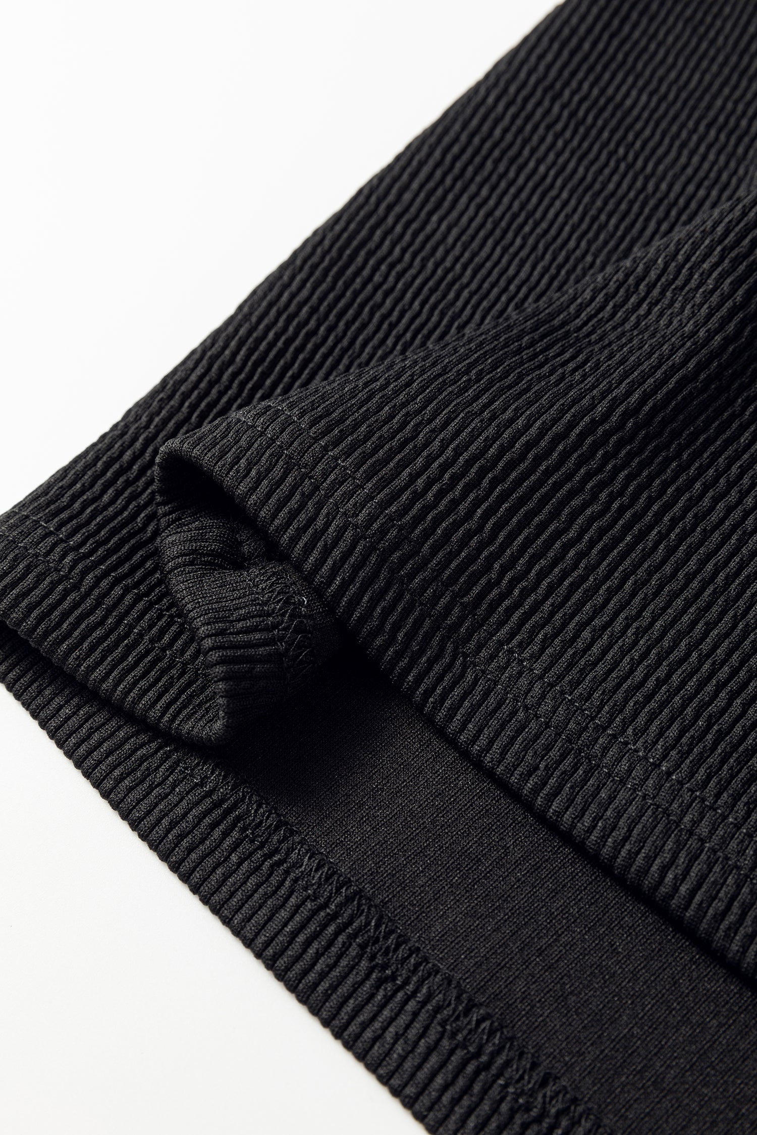 Black Contrast Leopard Ruffled Short Sleeve Ribbed Knit Top