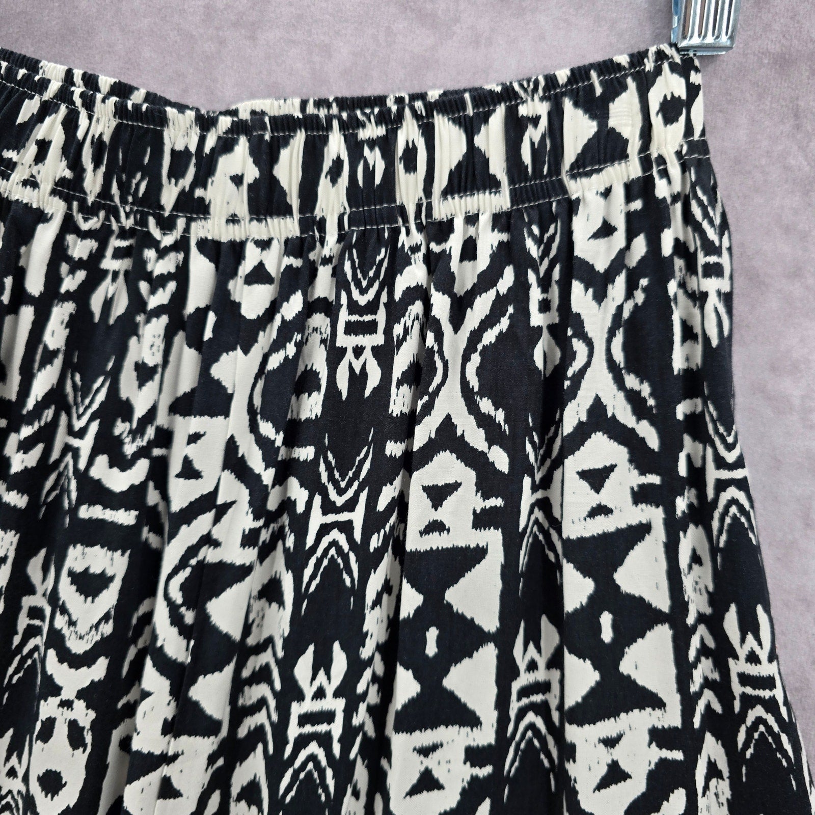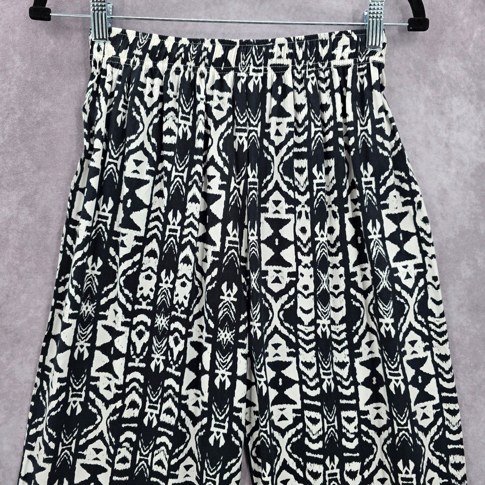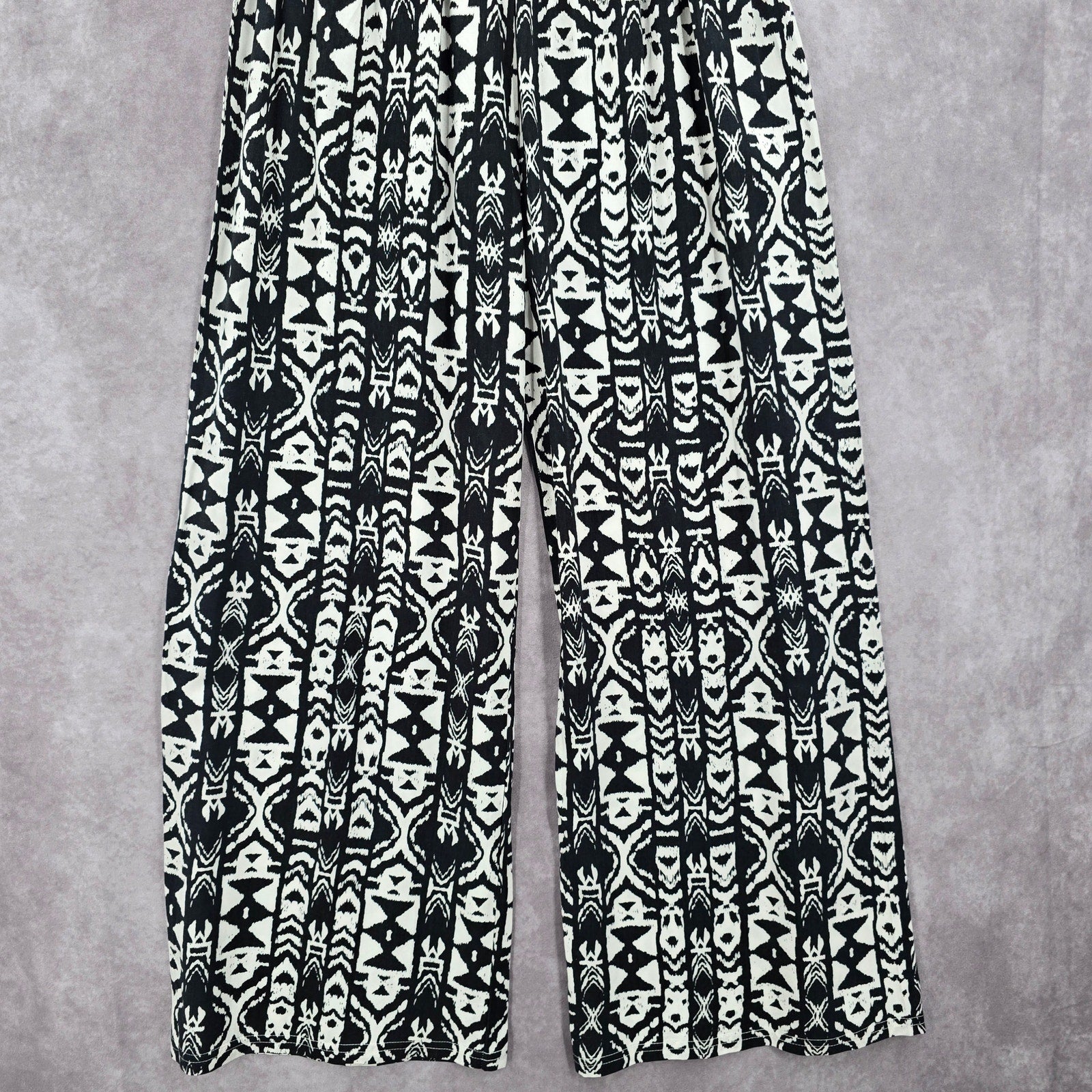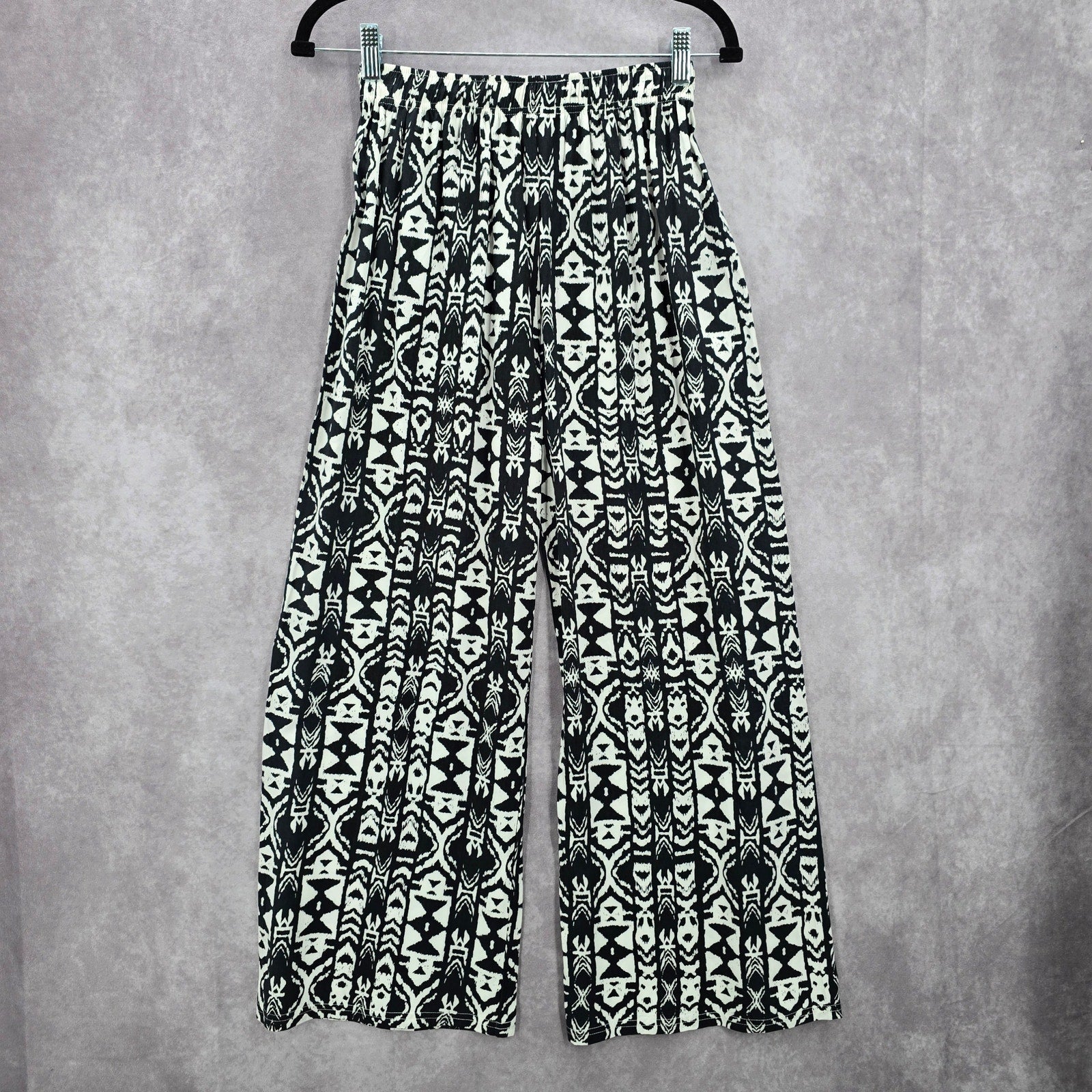 Black White Wide Leg Pullon Boho Beach Funky Print Bottoms Pants Medium