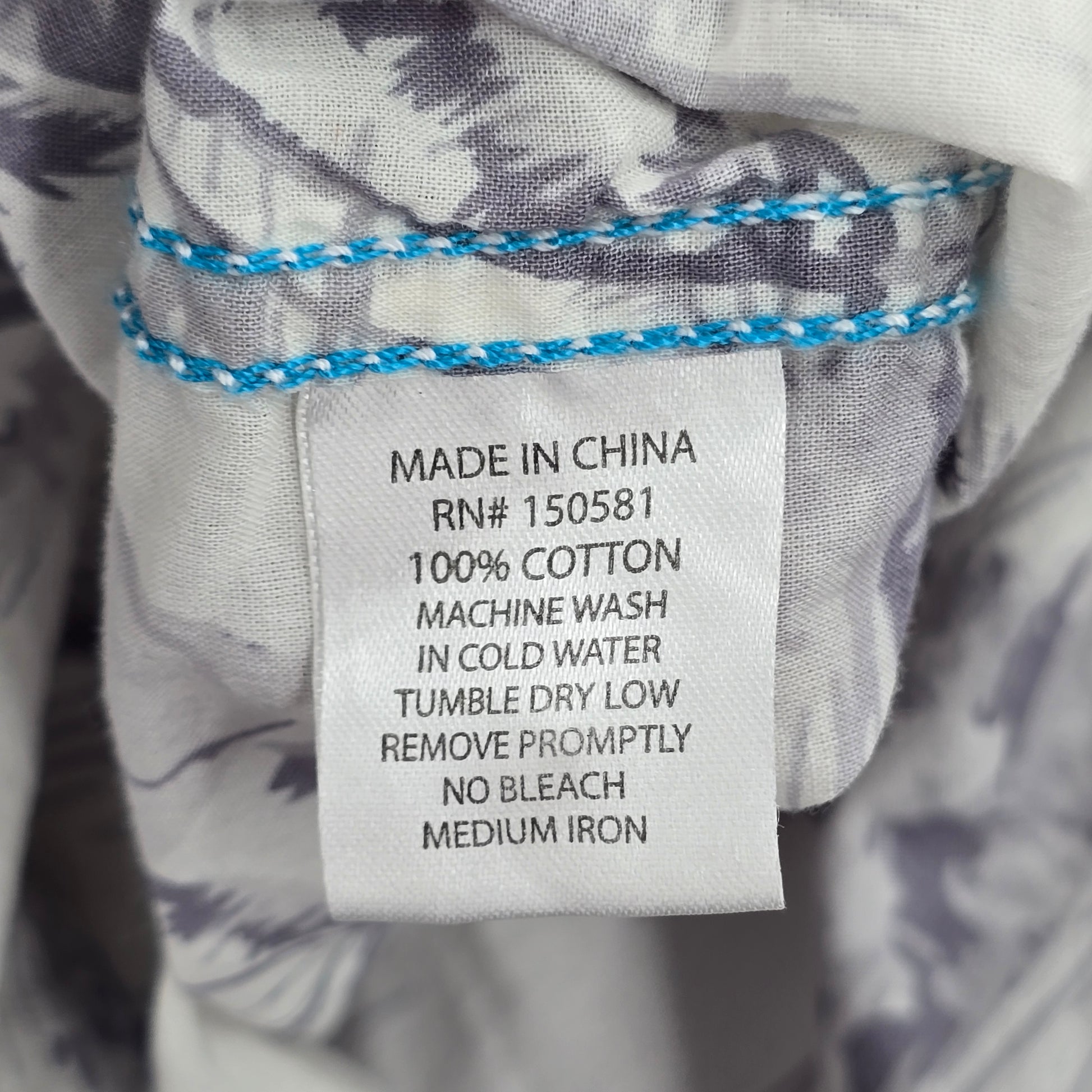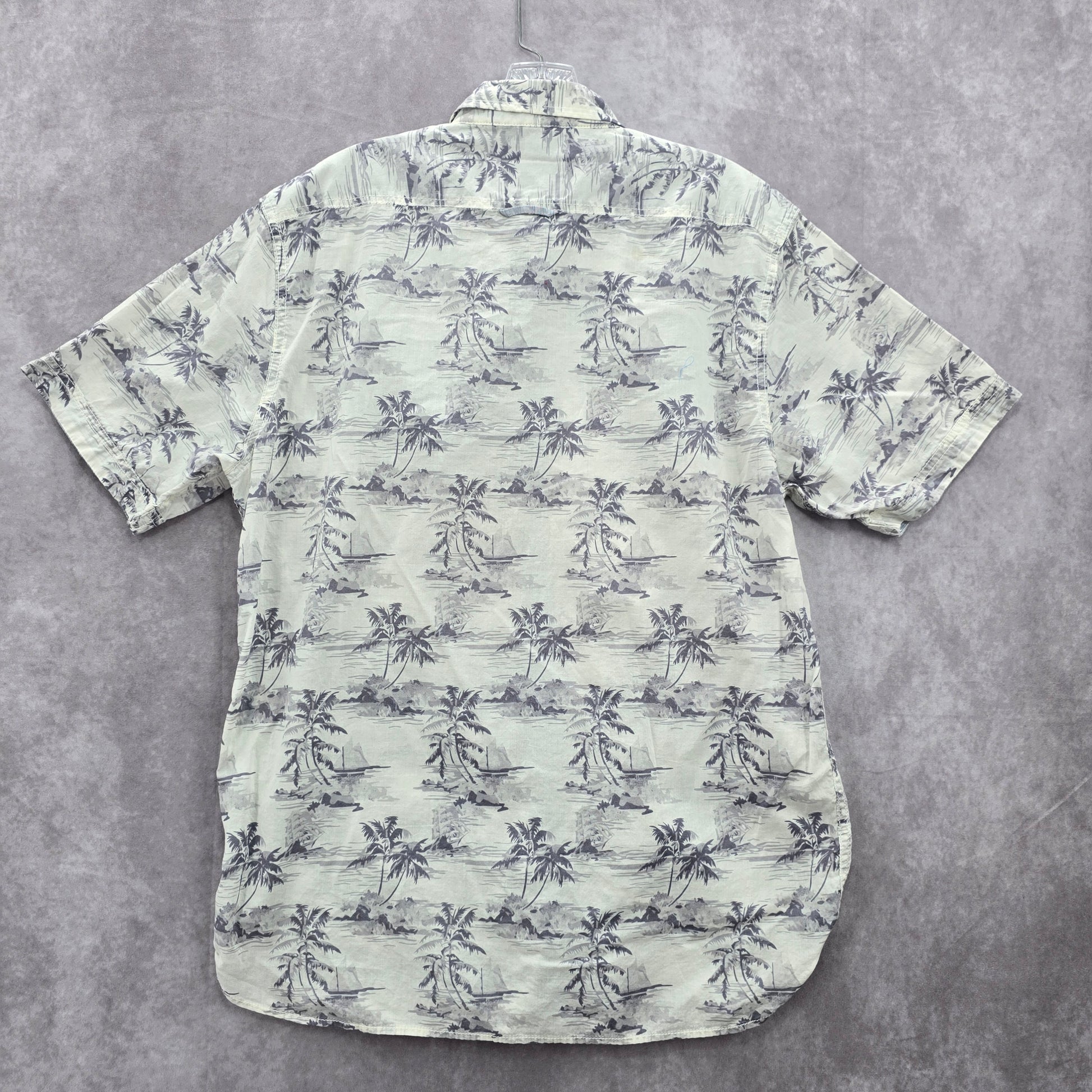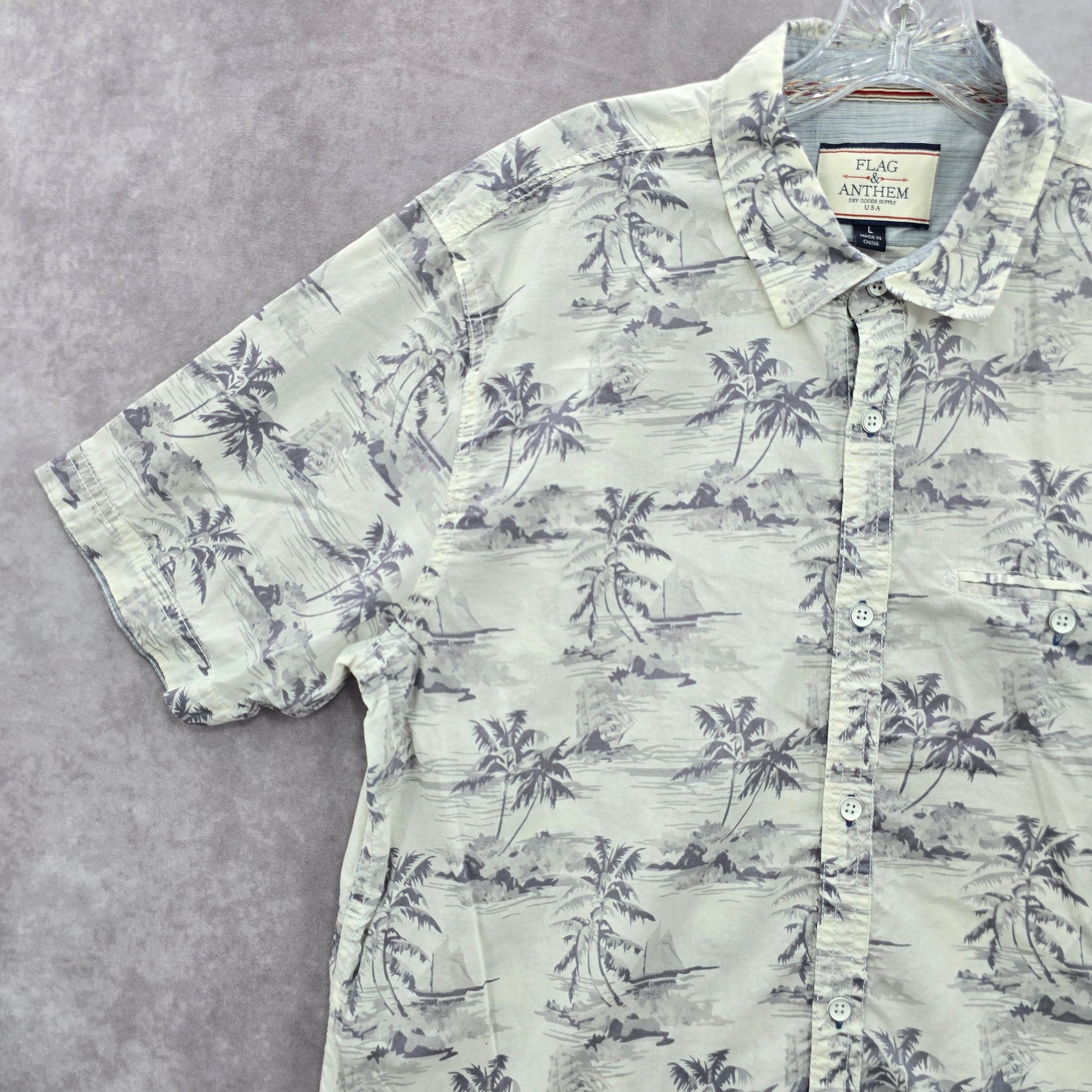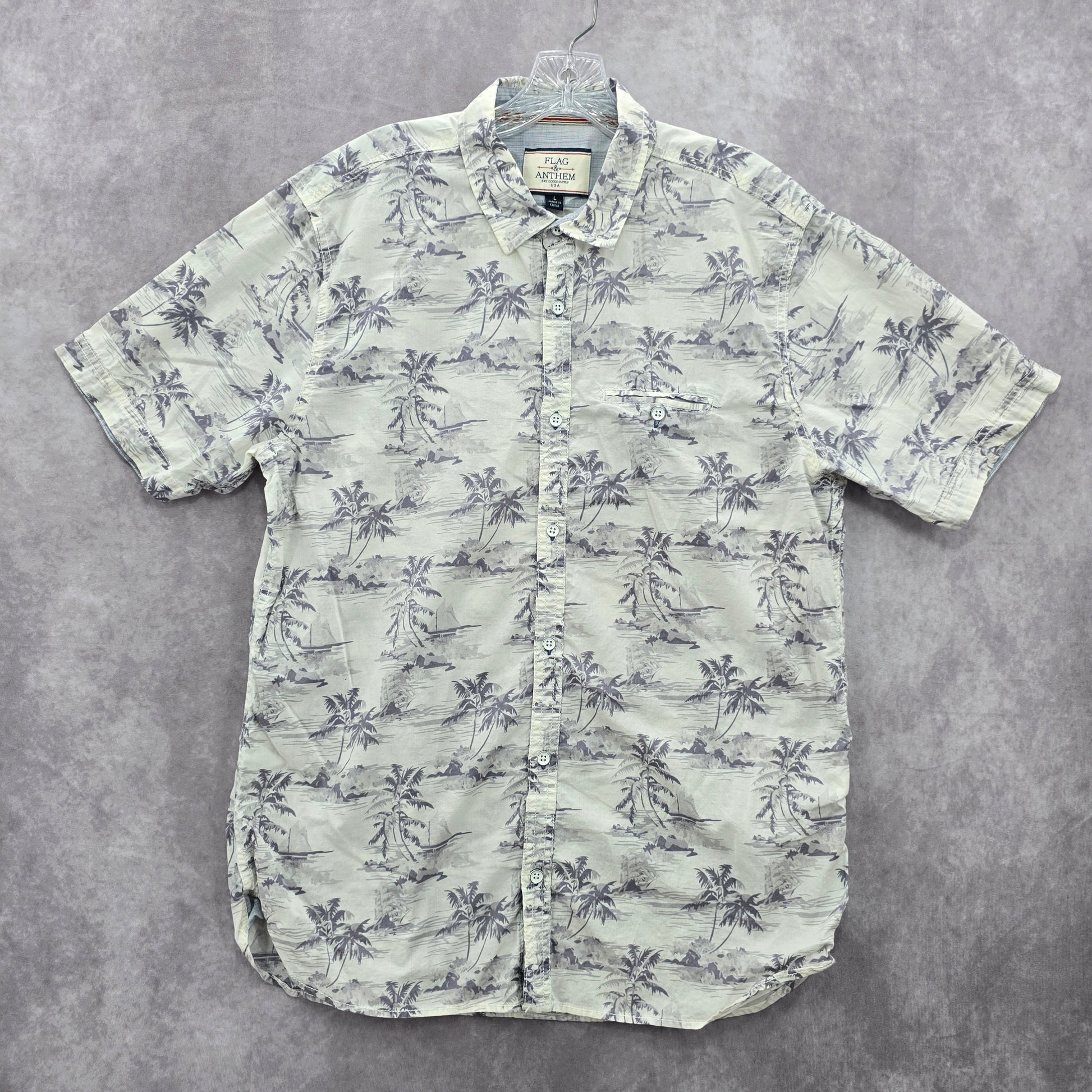 Flag & Anthem White Beach Palm Tropical Surf Island Vintage Hawaiian Shirt Large