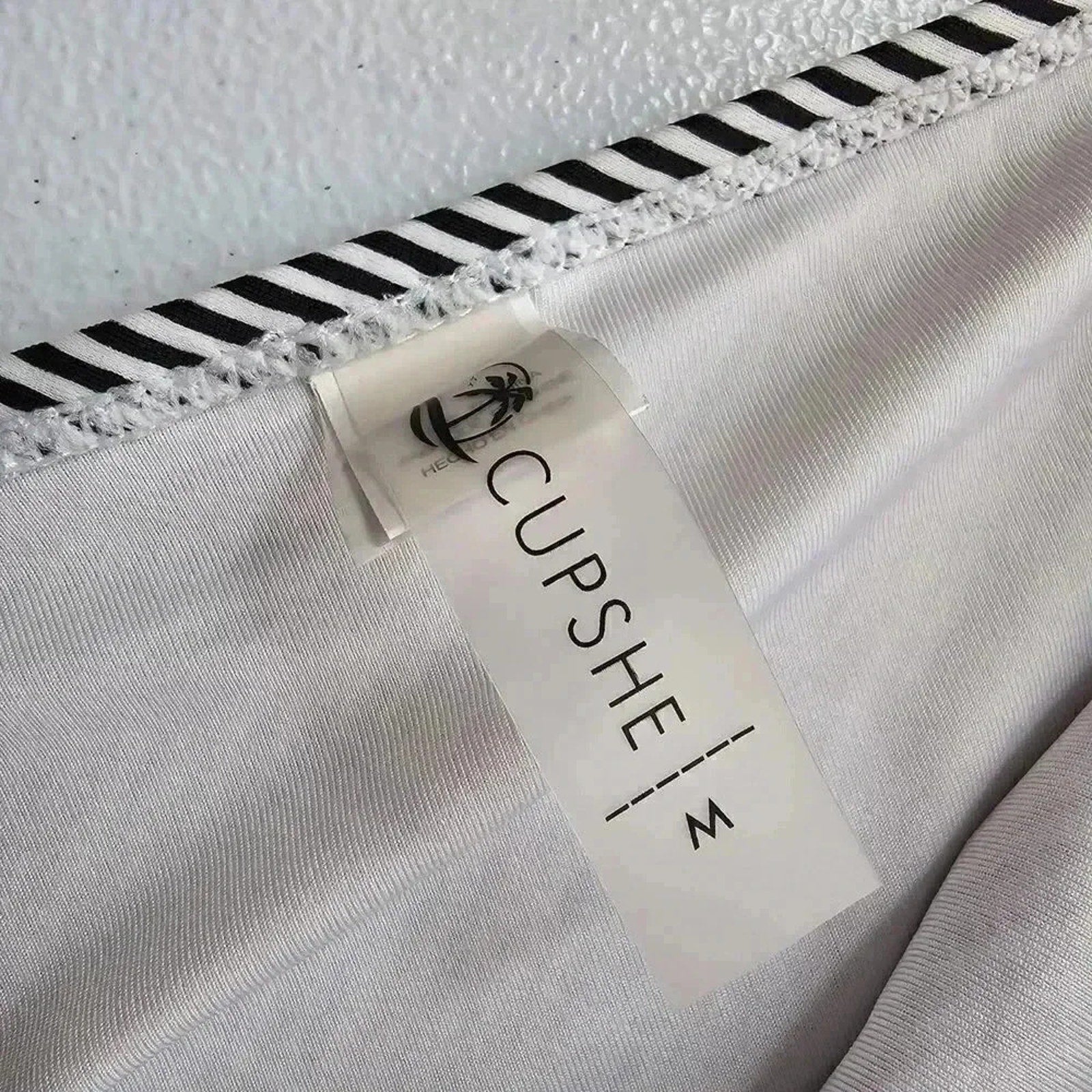 Cupshe Black White Stripe High Rise Bikini Bottoms Swimwear Swimsuit Size Medium