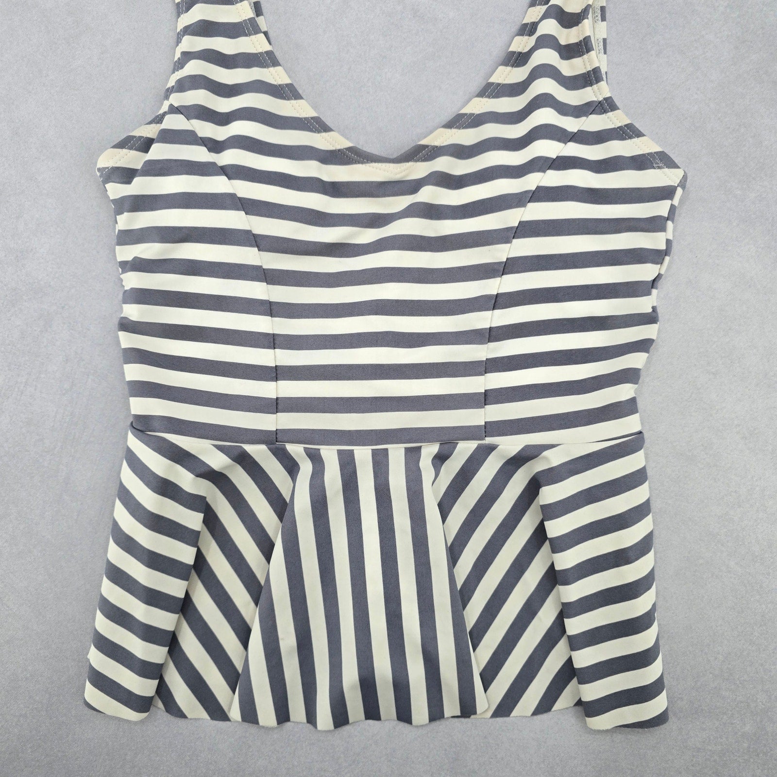 Cupshe Gray White Stripes Tankini Swimwear Crop Padded Top Beach XS Extra Small