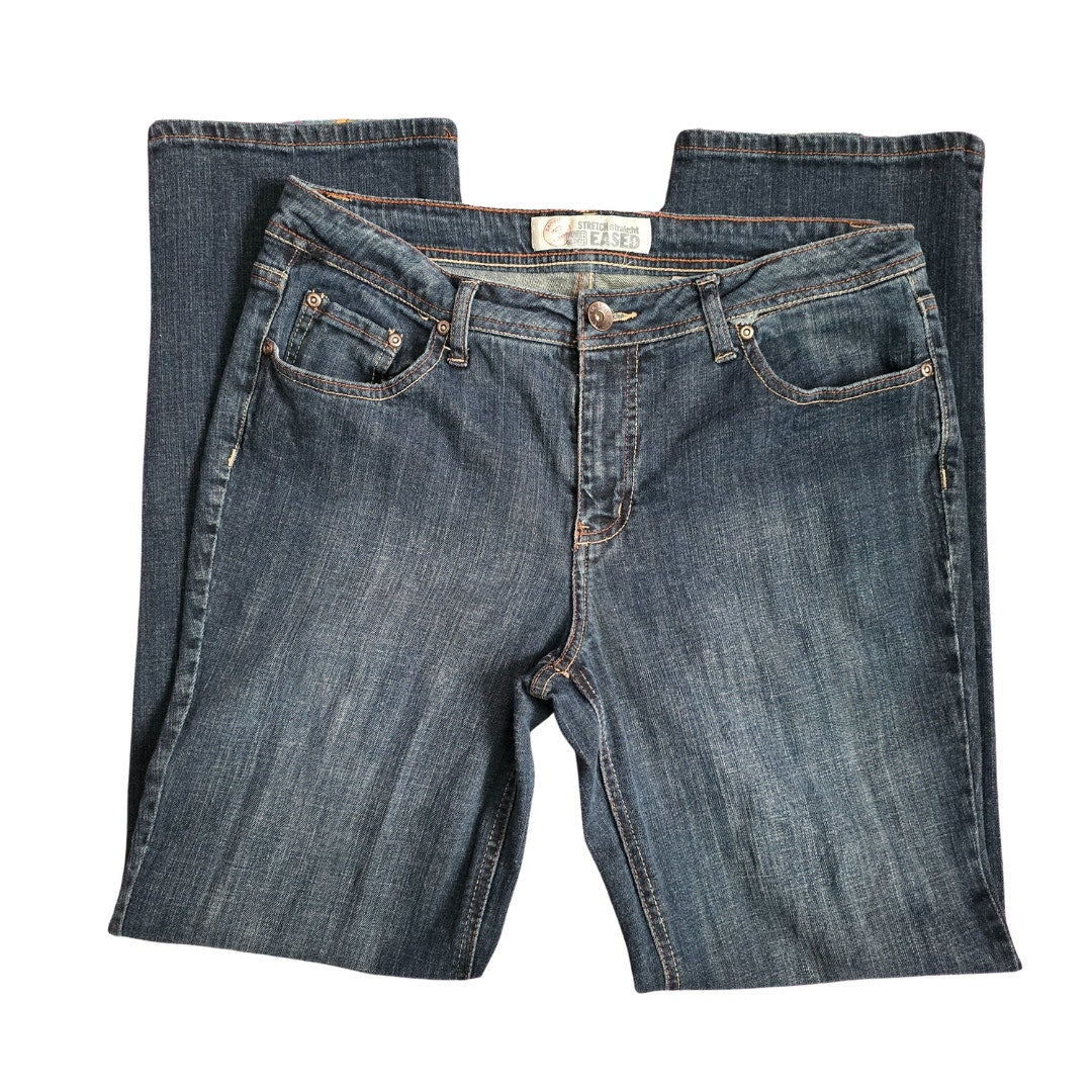 Faded Glory Dark Blue Straight Stretch Eased Jeans Denim Bottom Size 10 Average