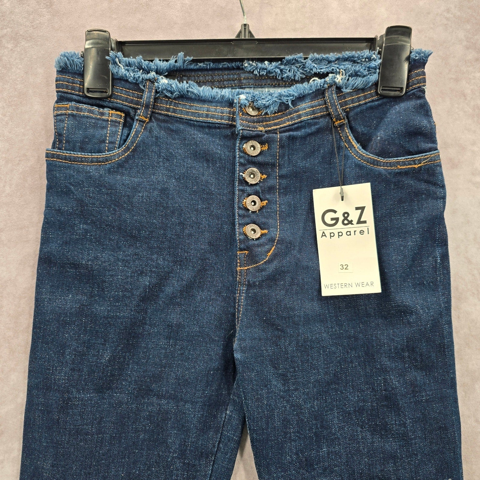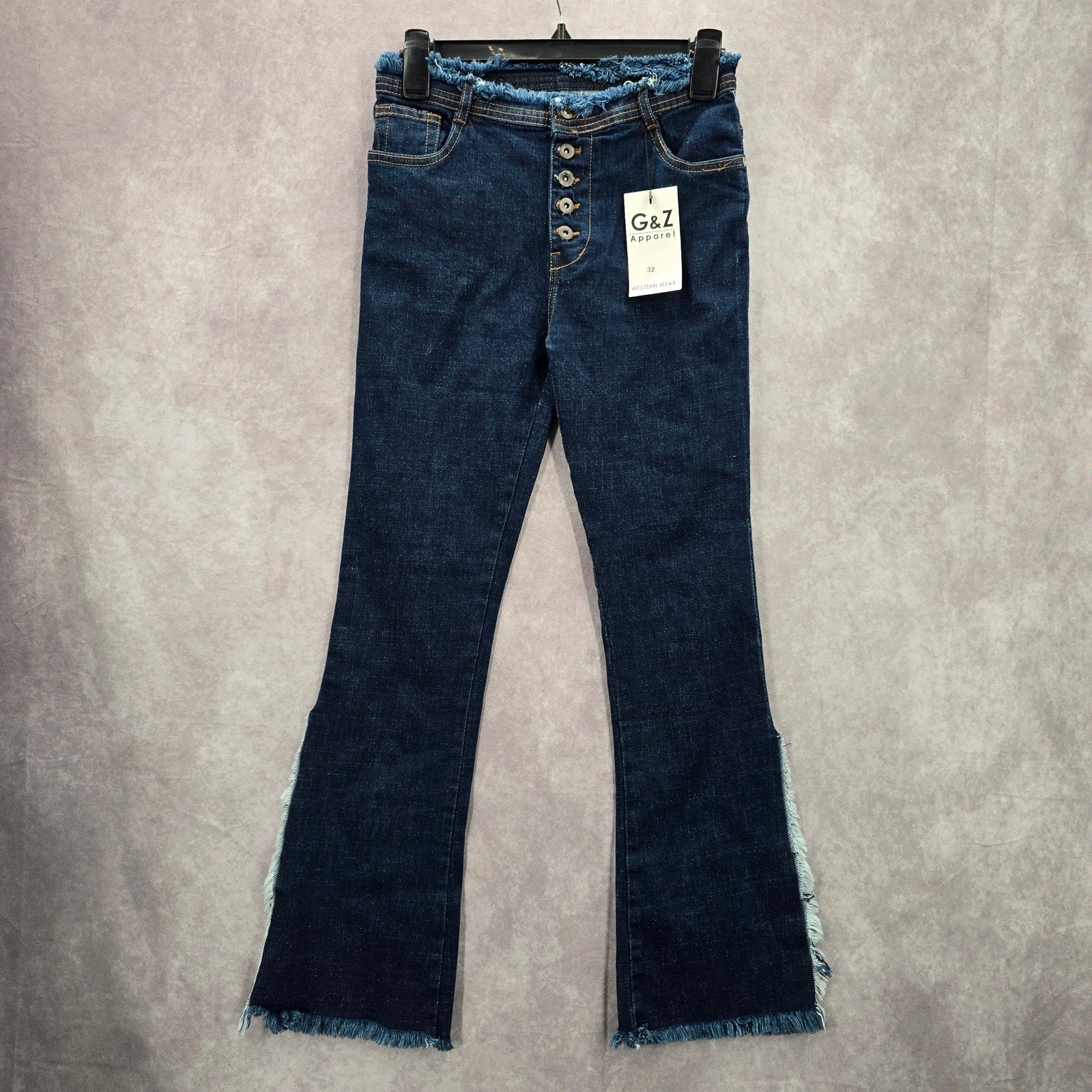 G&Z Apparel Blue Flare Fringe Western Button Vintage Jeans Pants Bottoms 32