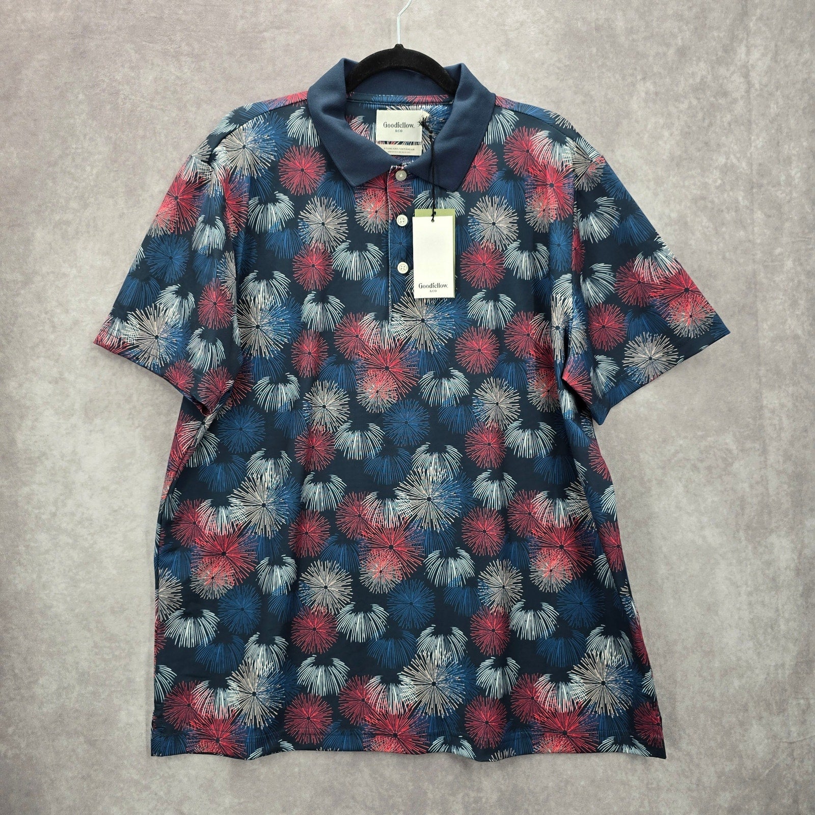 Goodfellow & Co Polo Shirt Mens Blue Pink Fireworks Active Short Sleeve XL