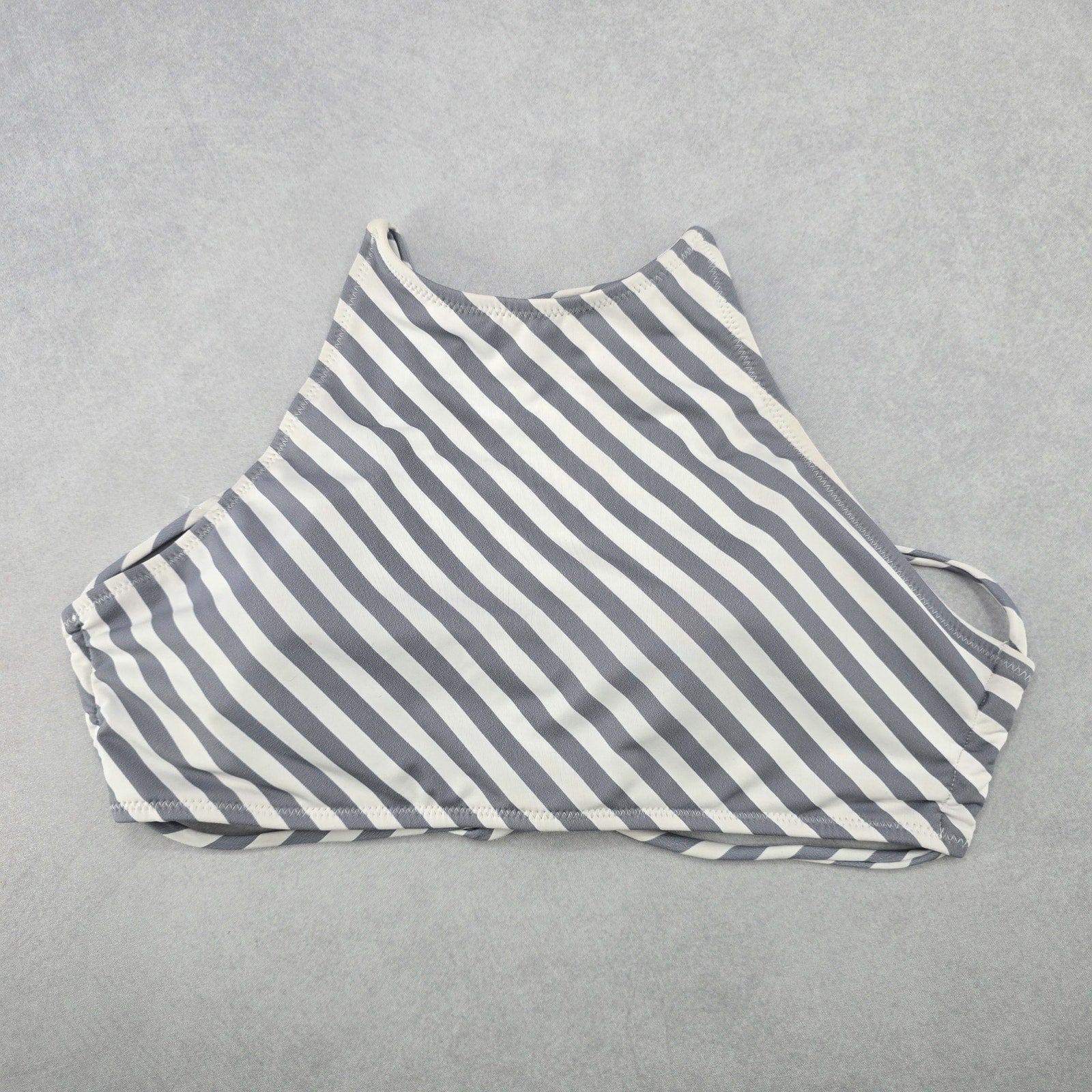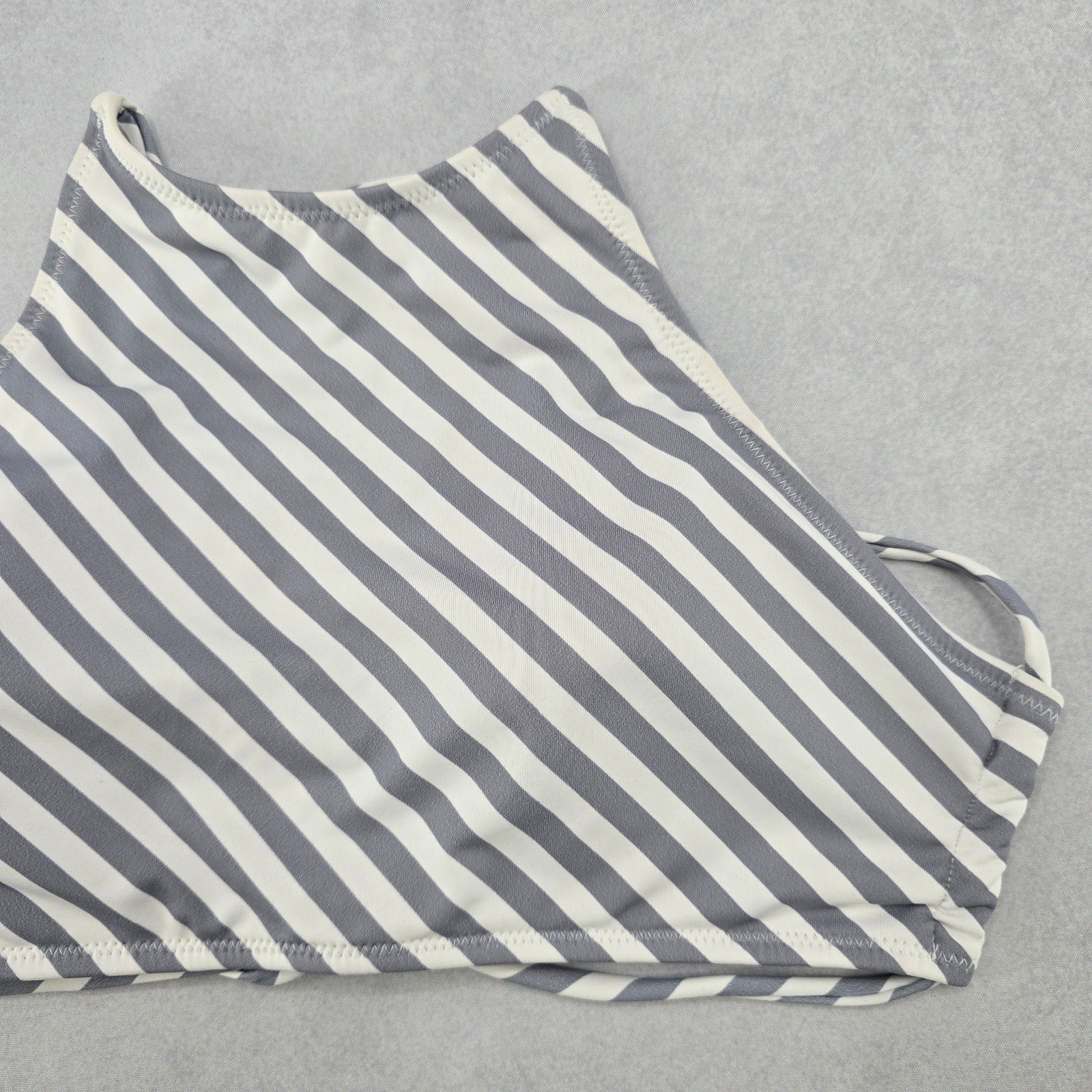 Gray Stripe Halter Tie Active Sports Bra Padded Bikini Bralette Swim Top S Small