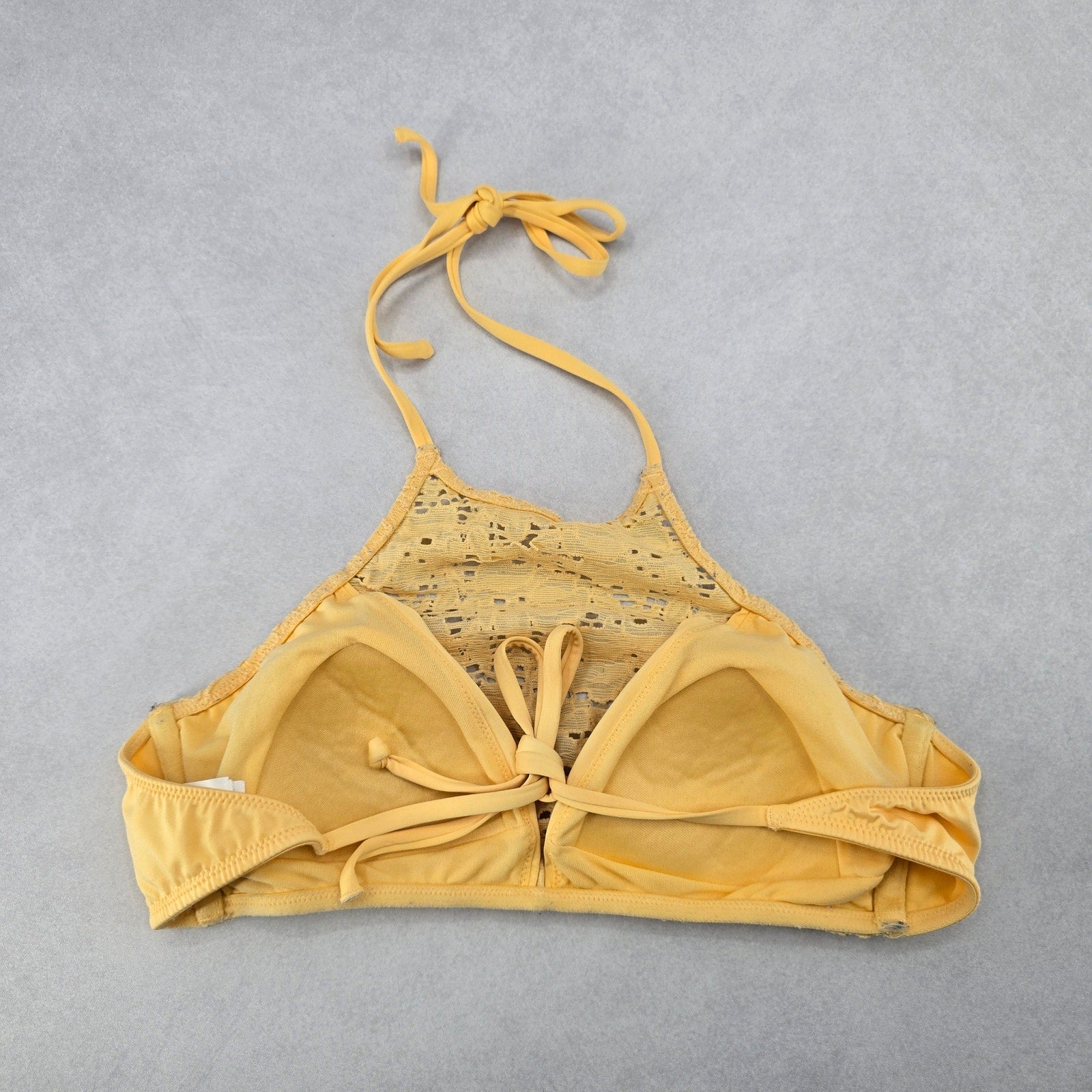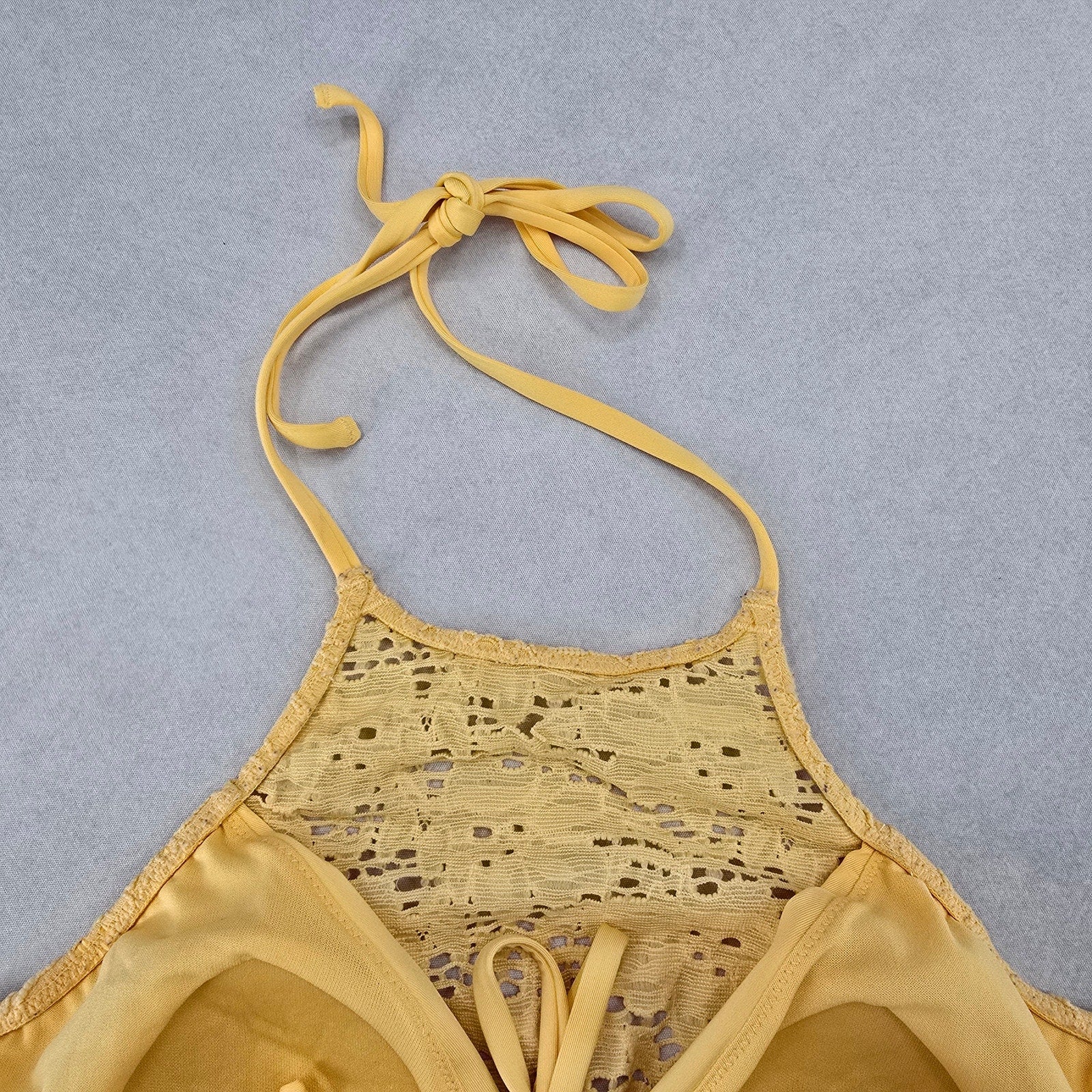 H&M Yellow Lace Crochet Eyelet Halter Tie Padded Bikini Bralette Swim Top 6