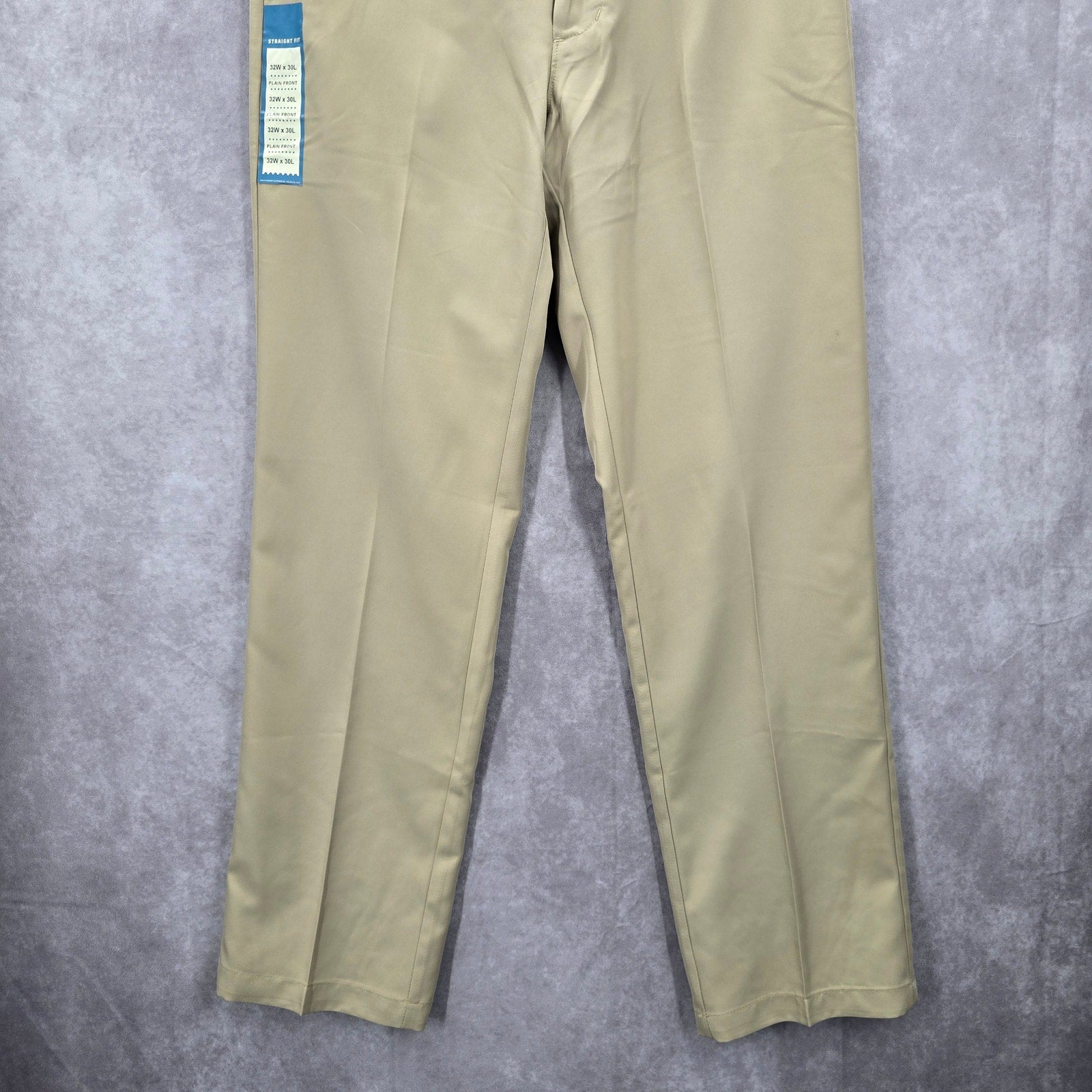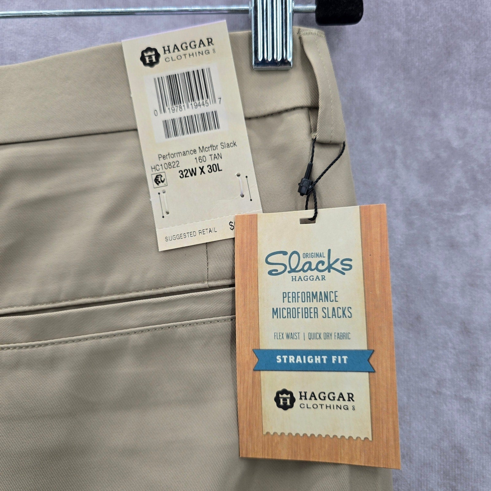 Haggar Tan Performance Microfiber Slacks Dress Pants Plain Straight Fit 32Wx30L