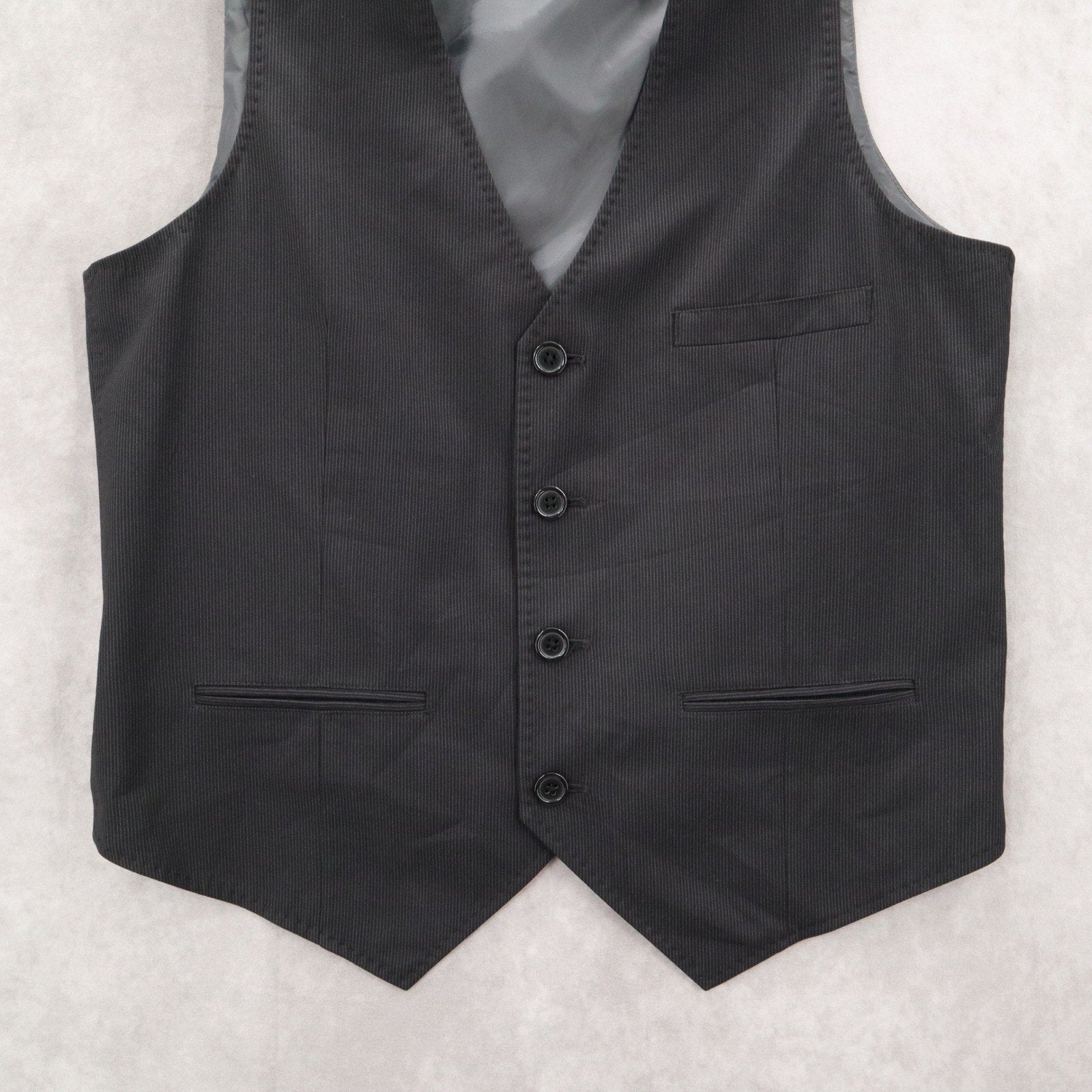 J Ferrar Black 4 Button Point Welt Pocket Stripe Formal Tuxedo Suit Vest M 42R
