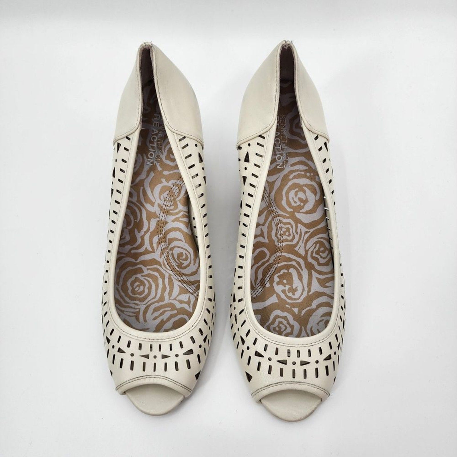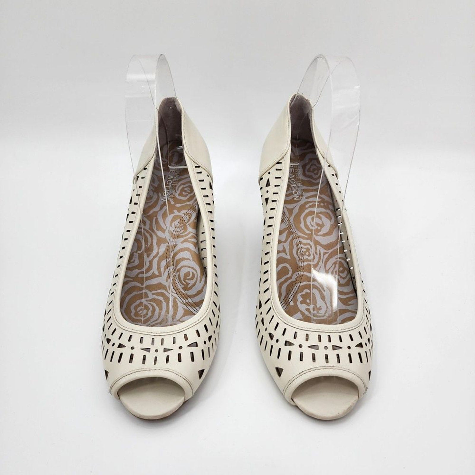Kenneth Cole Reaction Chill 2 the Bone Cream White Woman's Shoe Size 7.5 Peep Toe - Laser Cut - 3 inch heel.