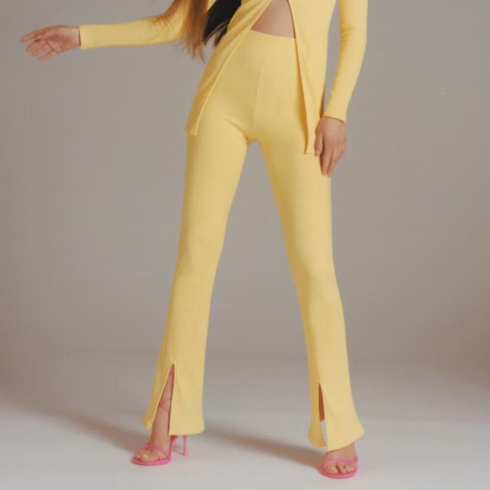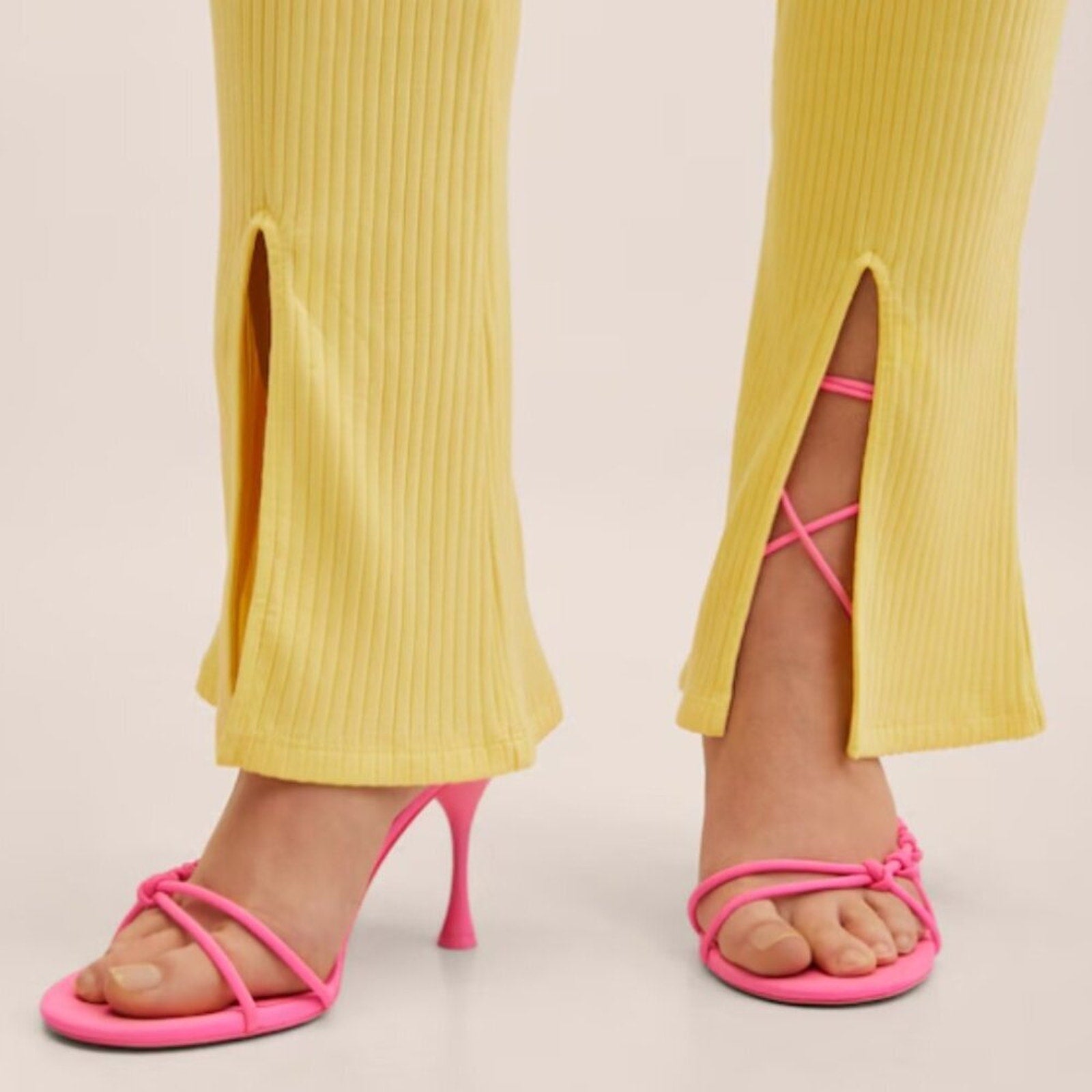 Mango MNG Side Slit Knit Pants Yellow NWT Large