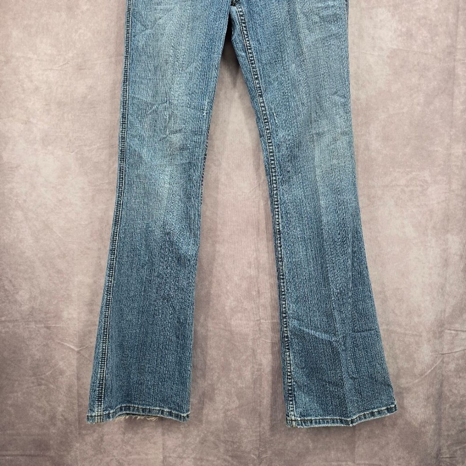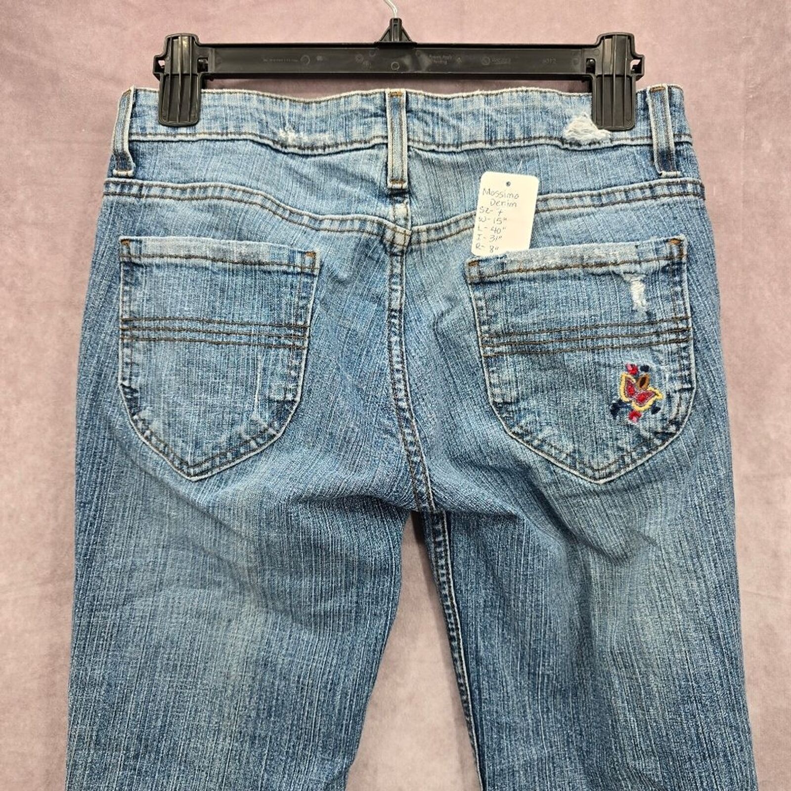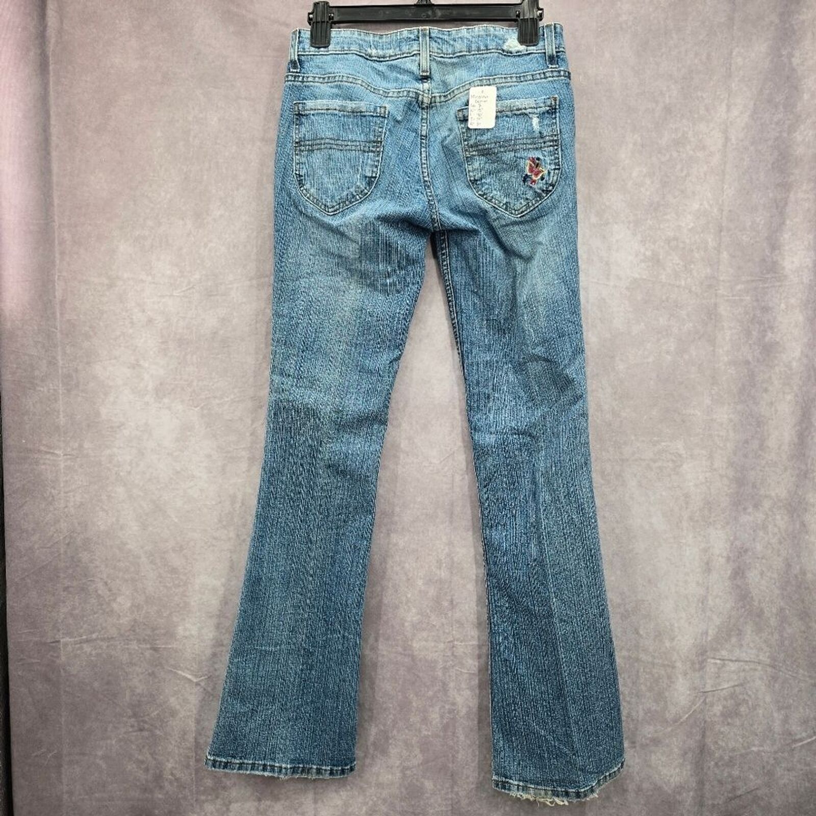 Mossimo Supply Co Denim Blue Jean Flare Bottoms Floral Pants Junior Size 7