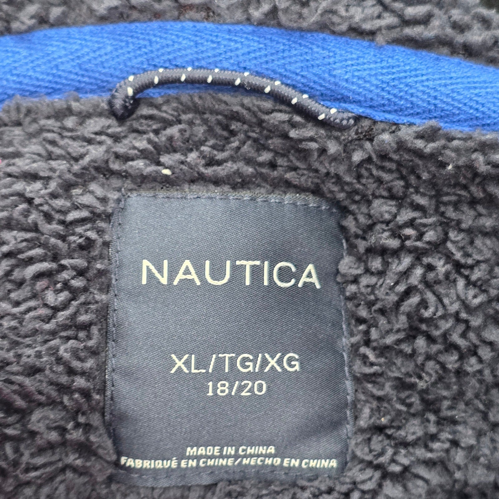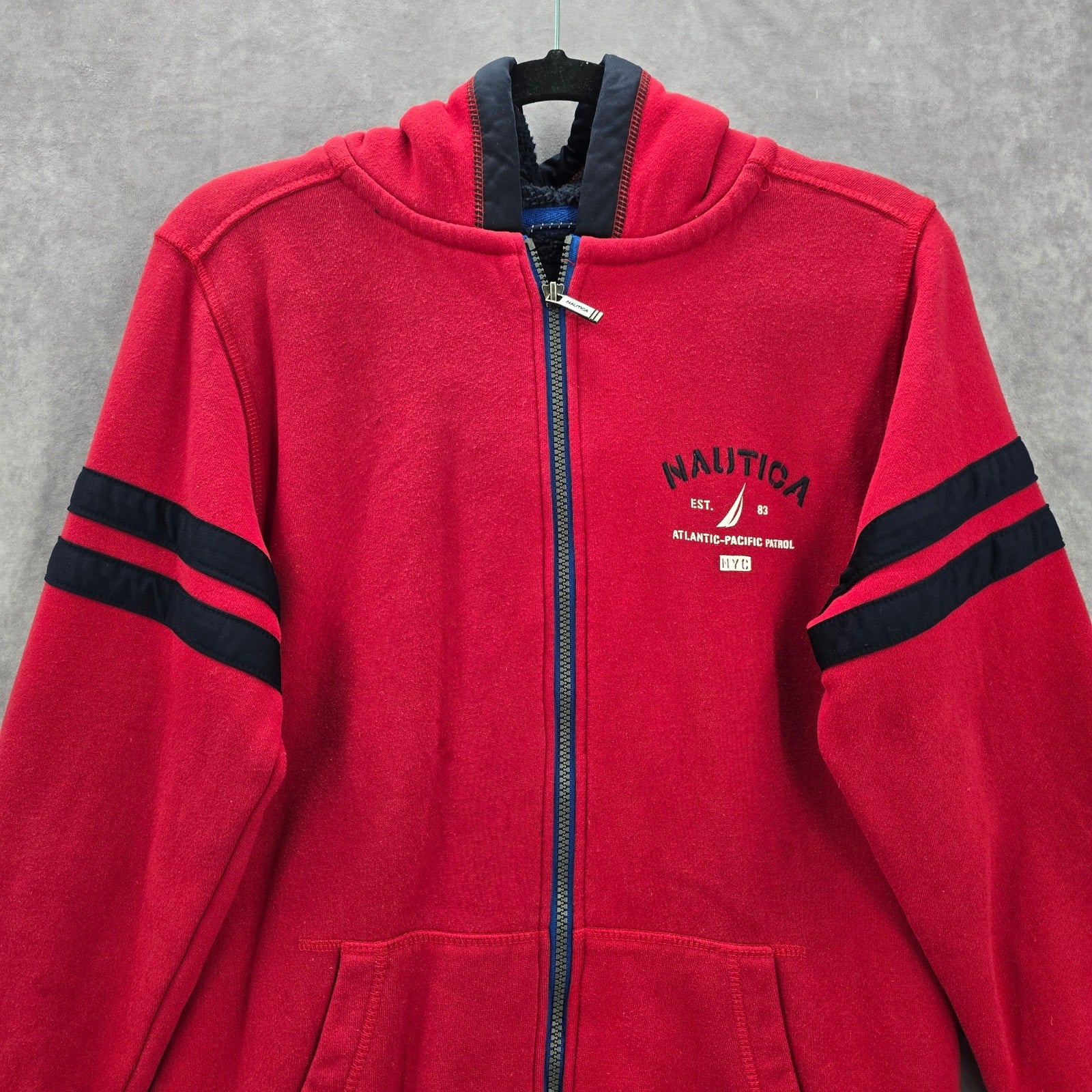 Nautica Red Zip Long Sleeve Fleece Sherpa Sweater Hoodie Boys Youth XL 18 20