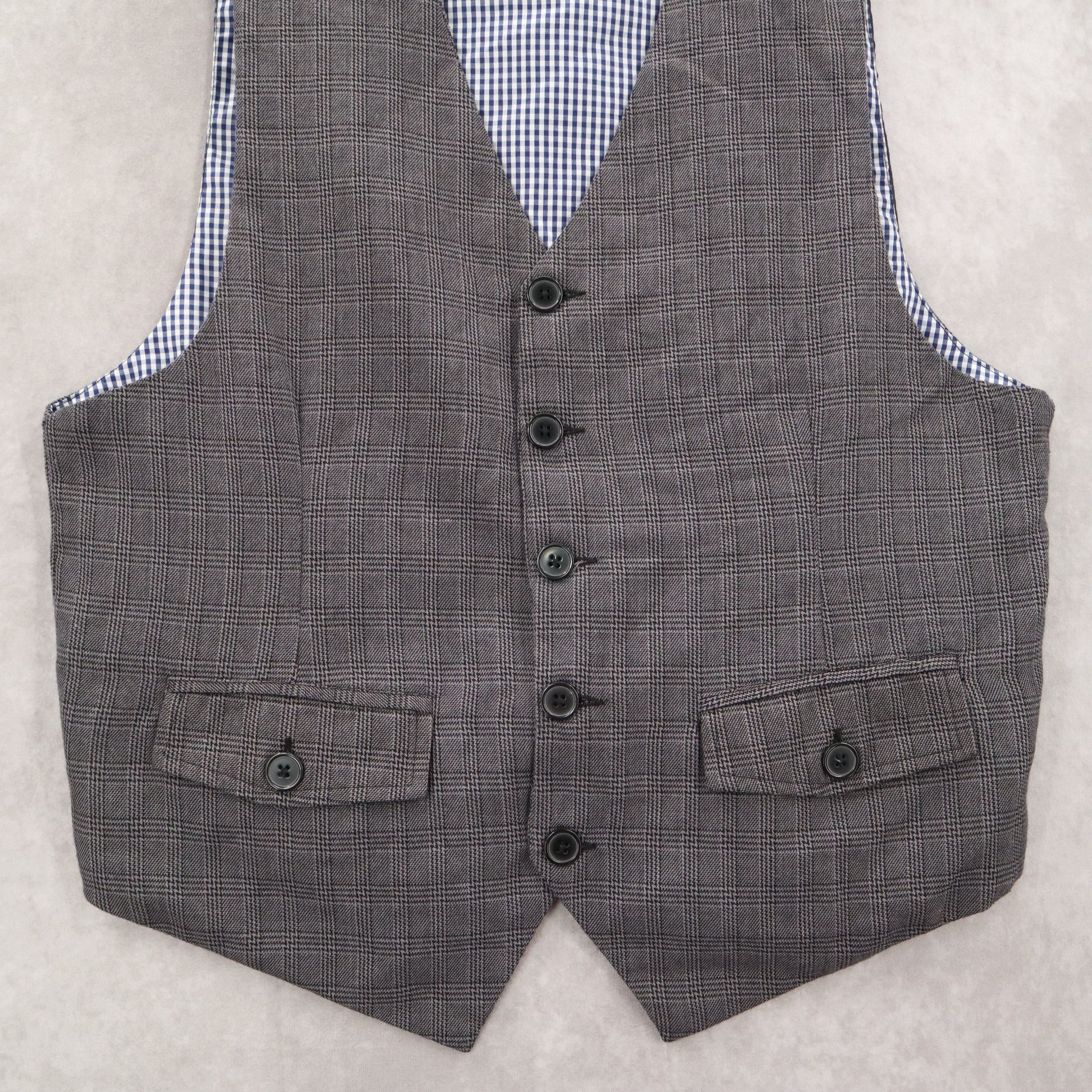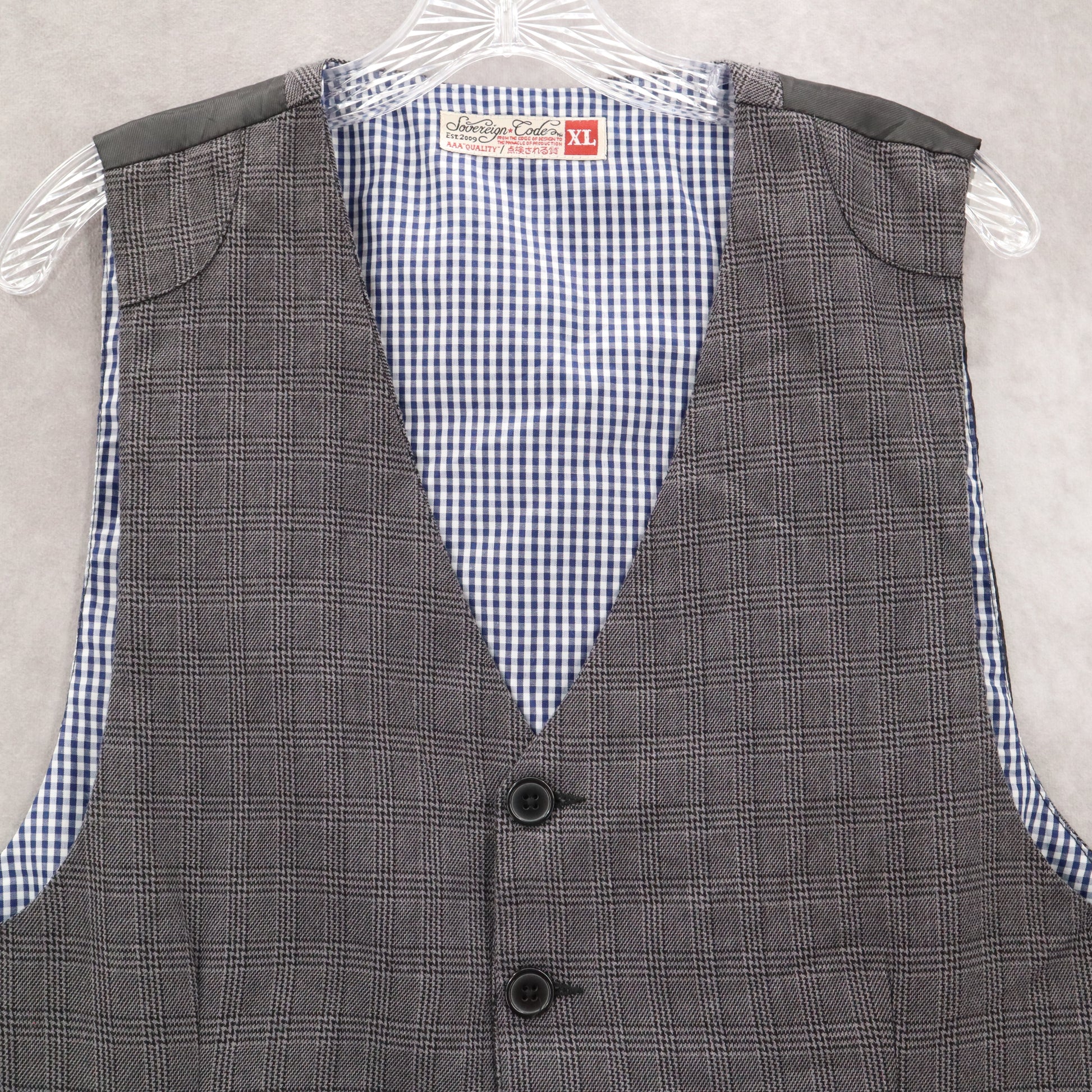 Sovereign Codes Gray Checker 5 Button Point Pocket Waistcoat Formal Suit Vest XL