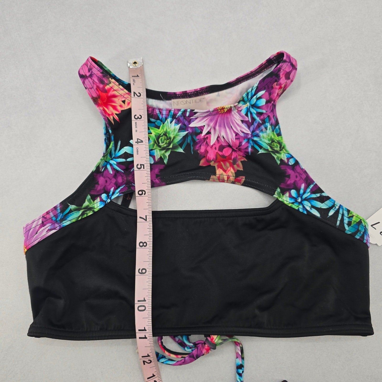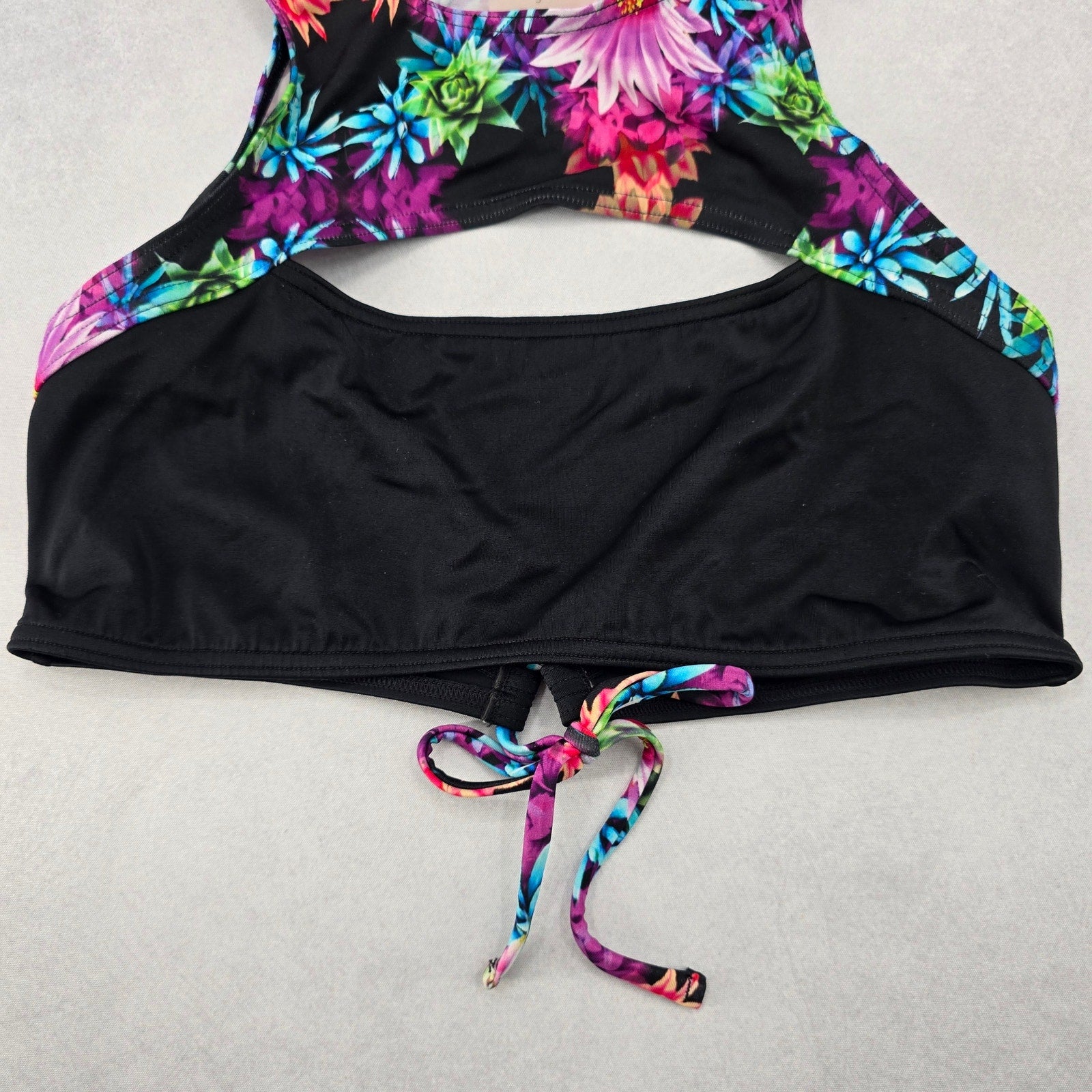 Neontide Black Floral Sports Bra Cutout Active Bikini Bralette Swim Top S Small