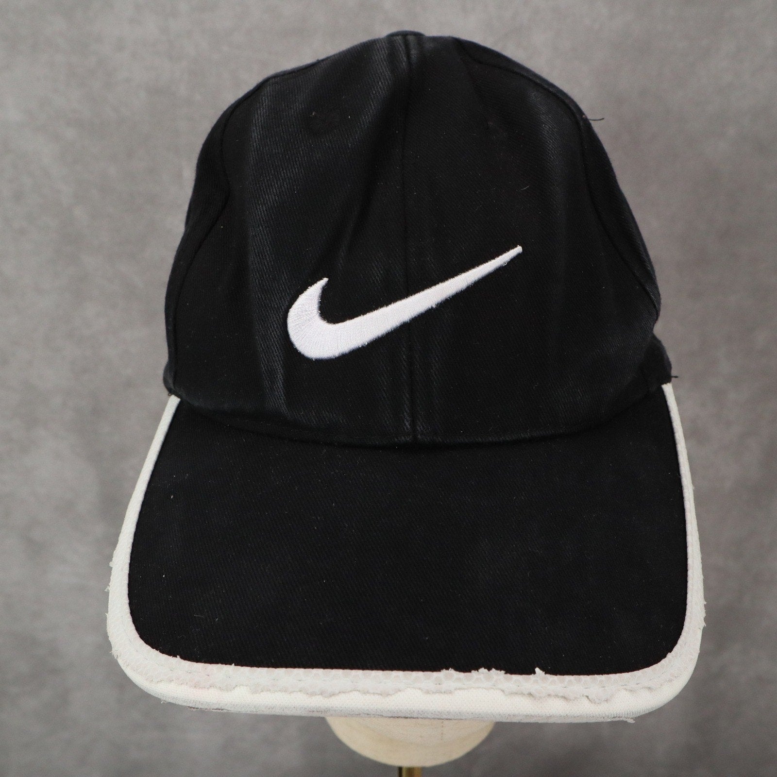Nike Black White Raw Logo Cloth Strap Athletic Golf Baseball Cap Hat Small