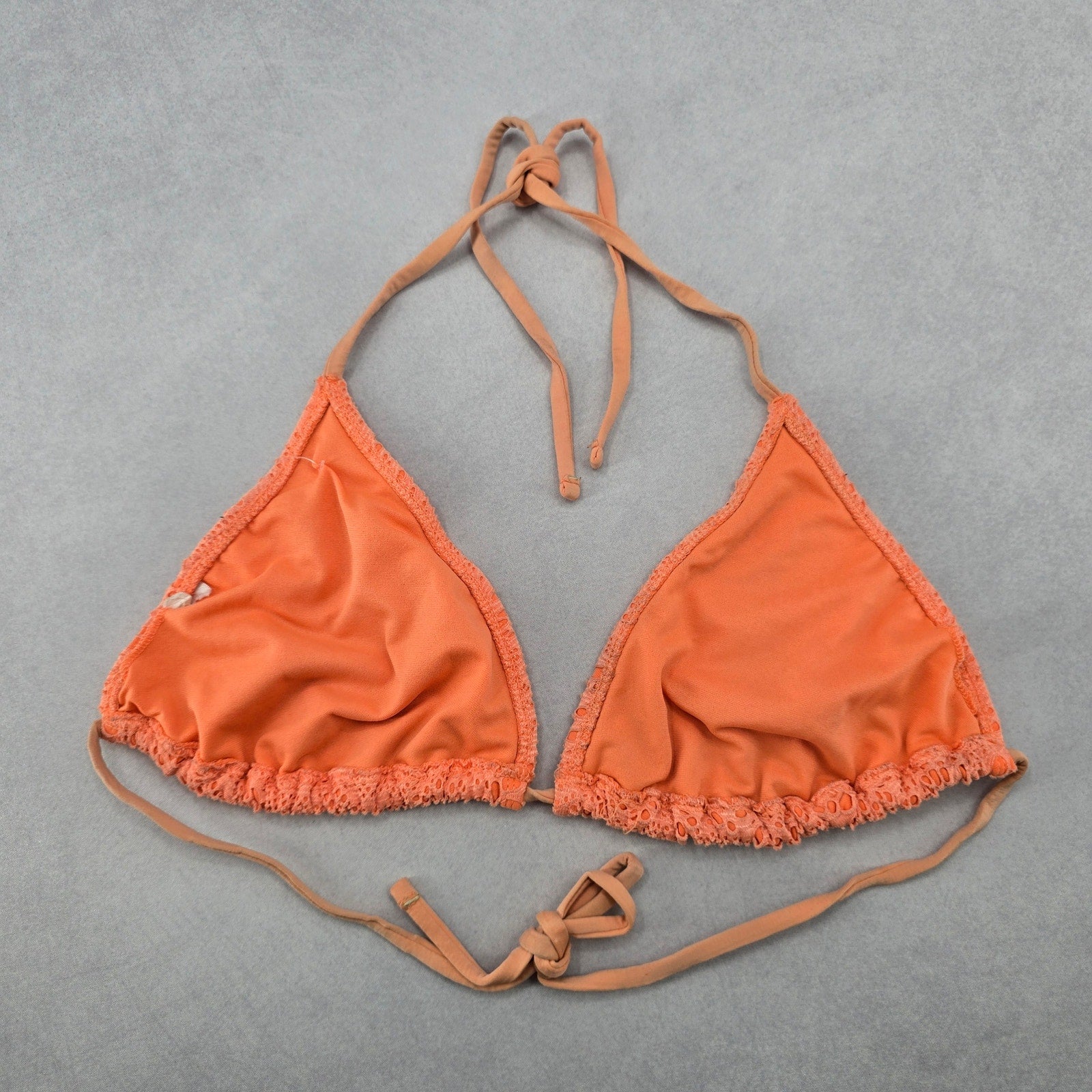 Orange Lace Crochet Eyelet Tie Sports Bra Bikini Bralette Swim Top S Small