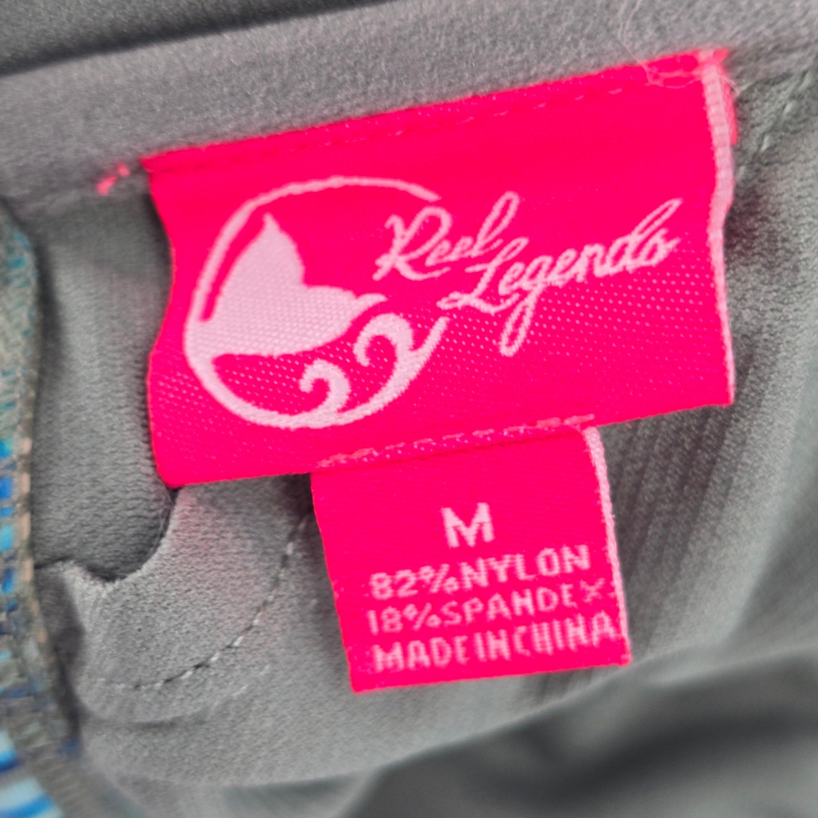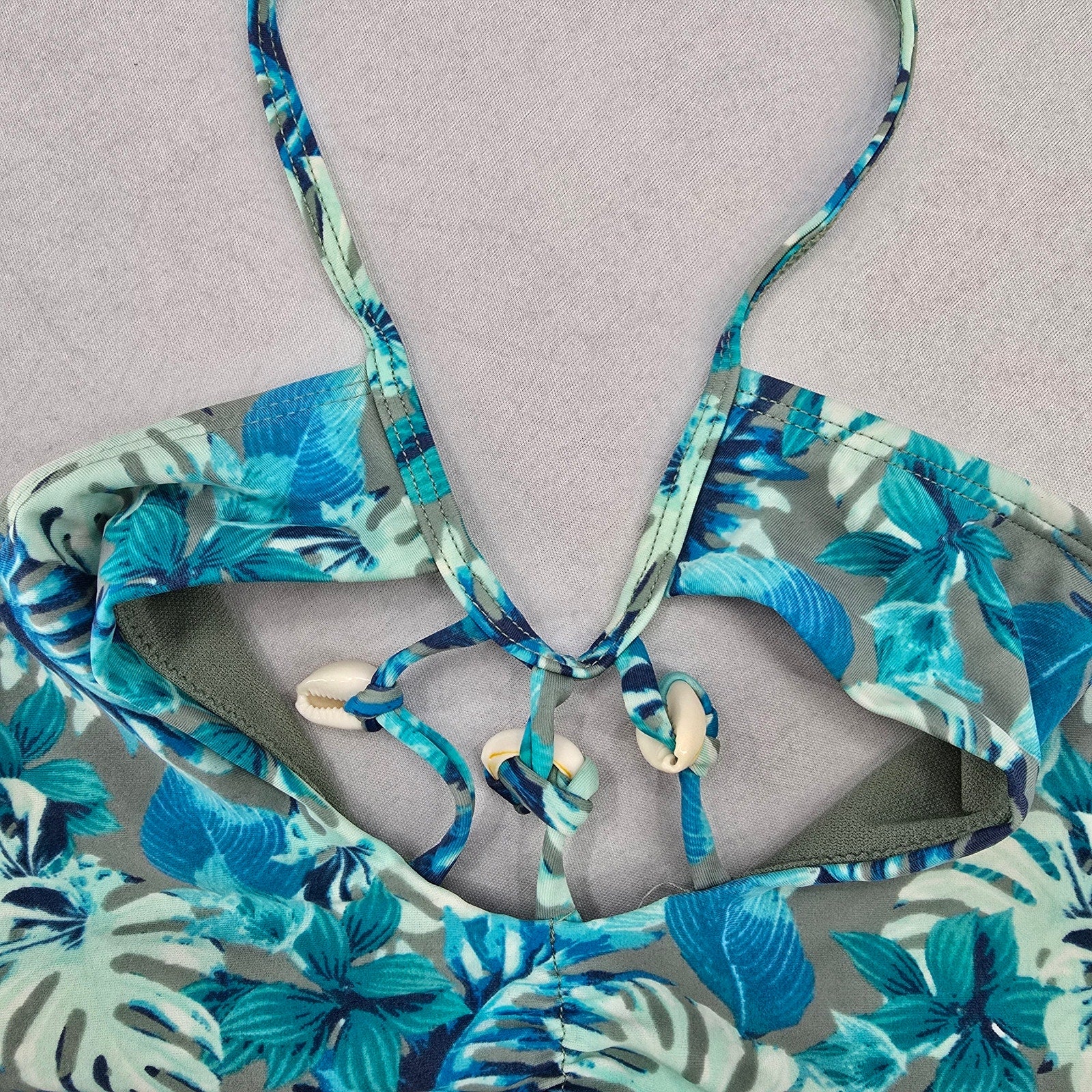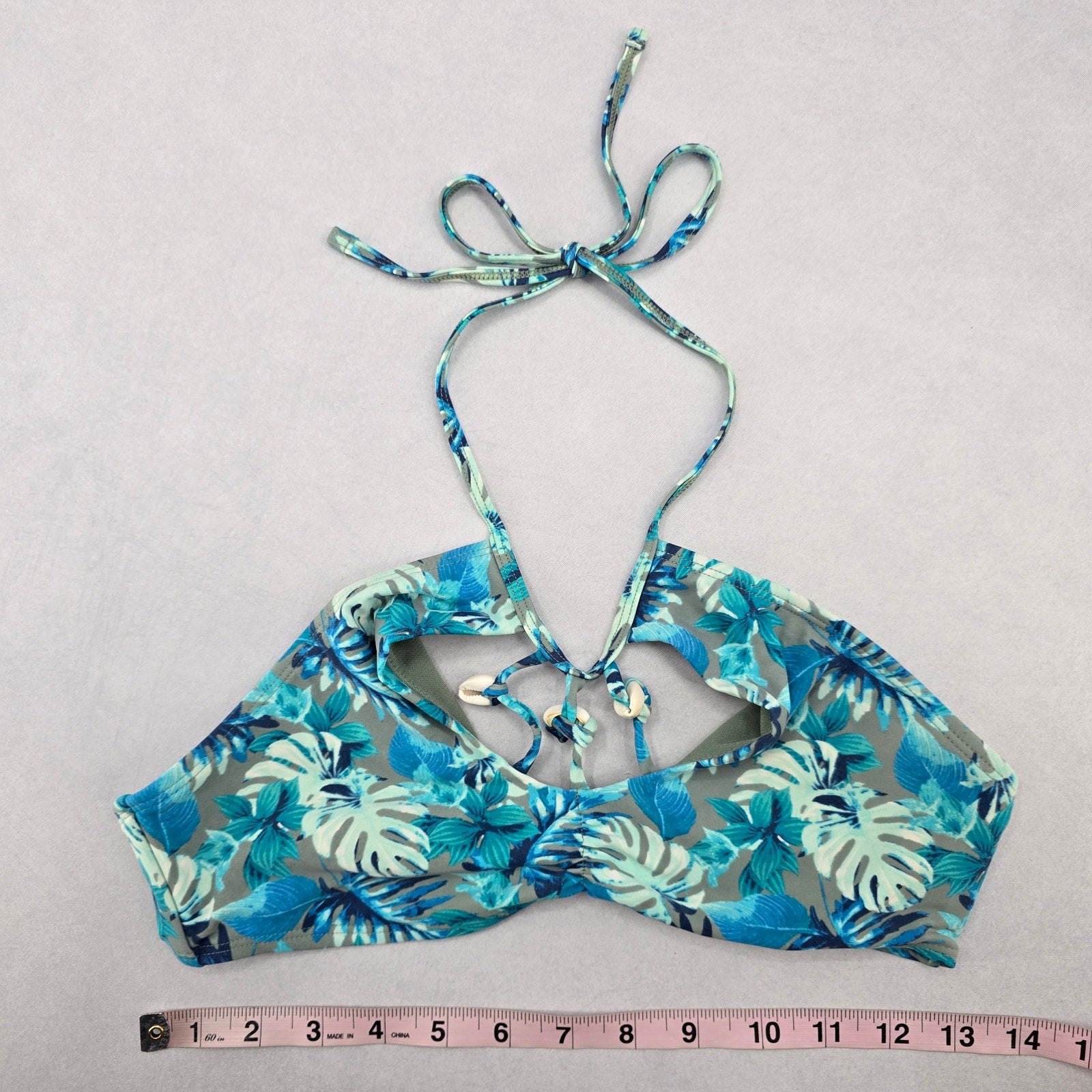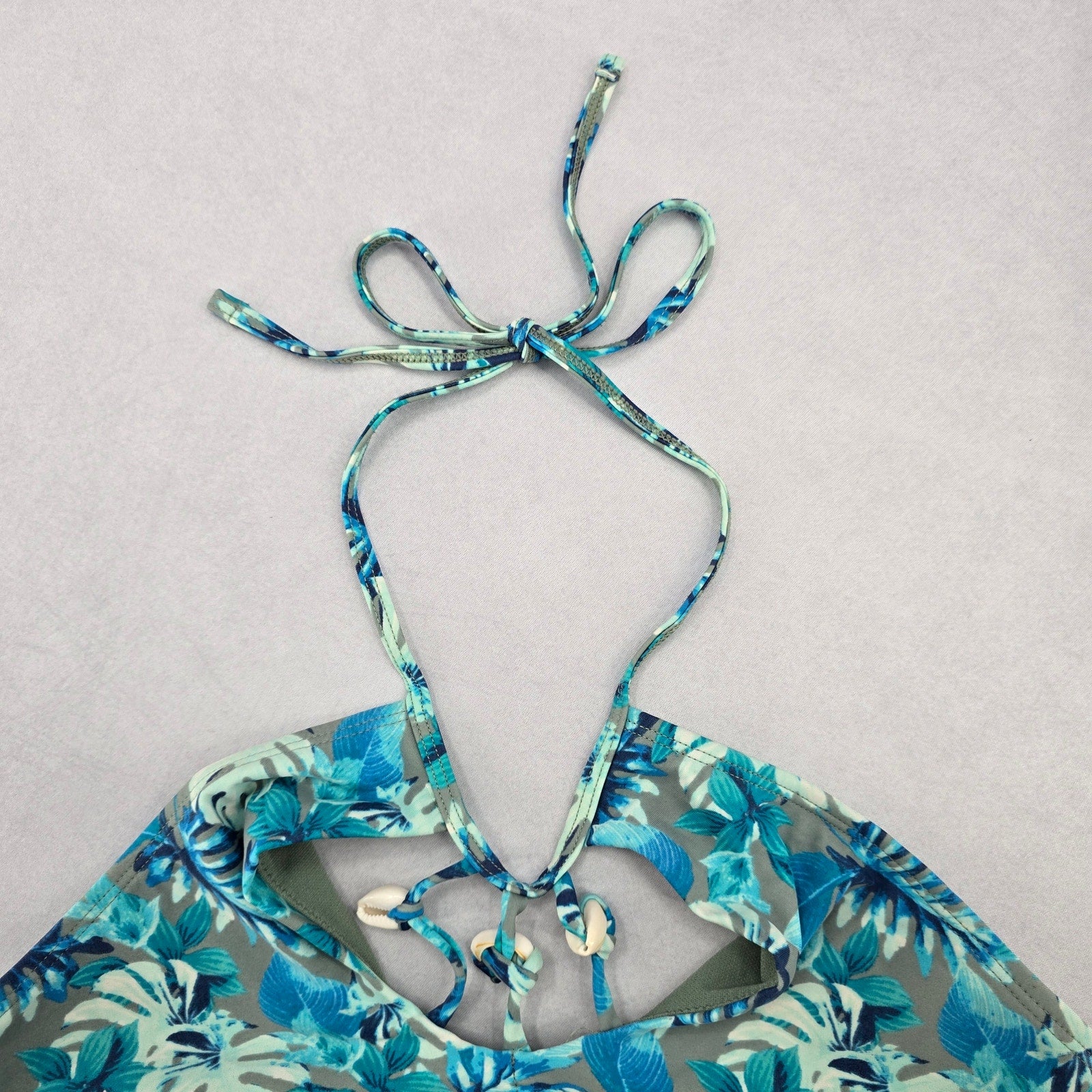 Reel Legends Blue Tropical Shell Tie Swim Sports Bra Beach Bikini Top M Medium