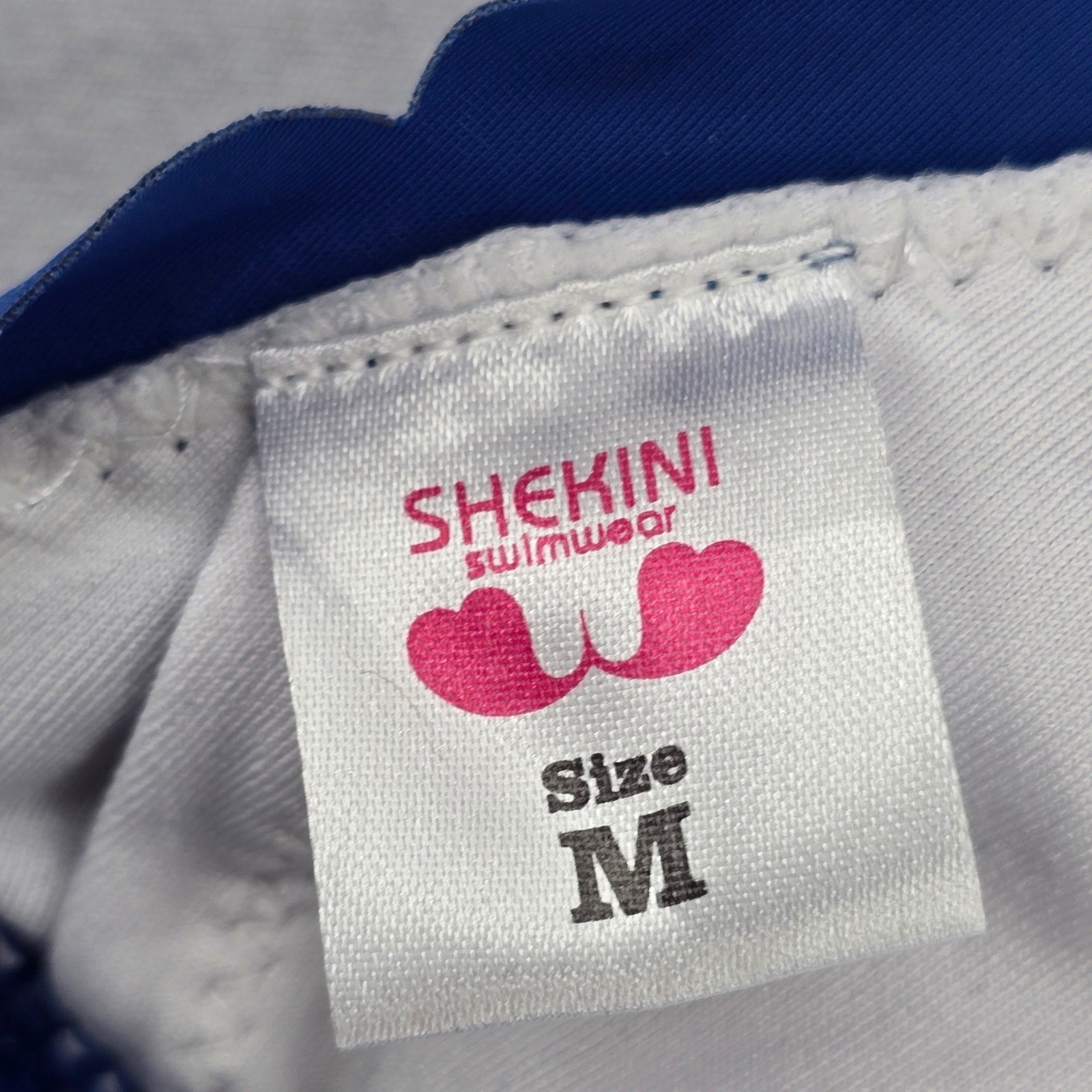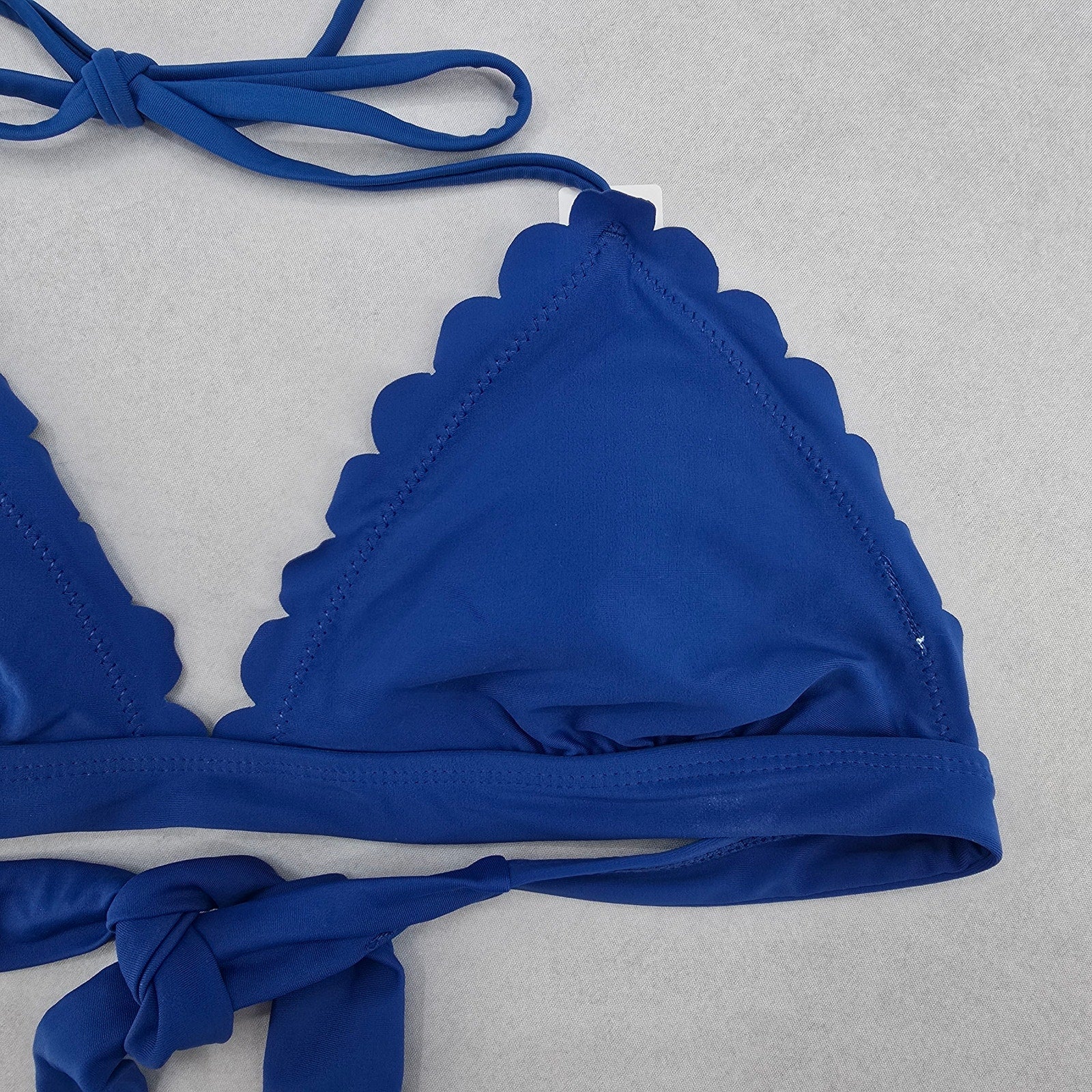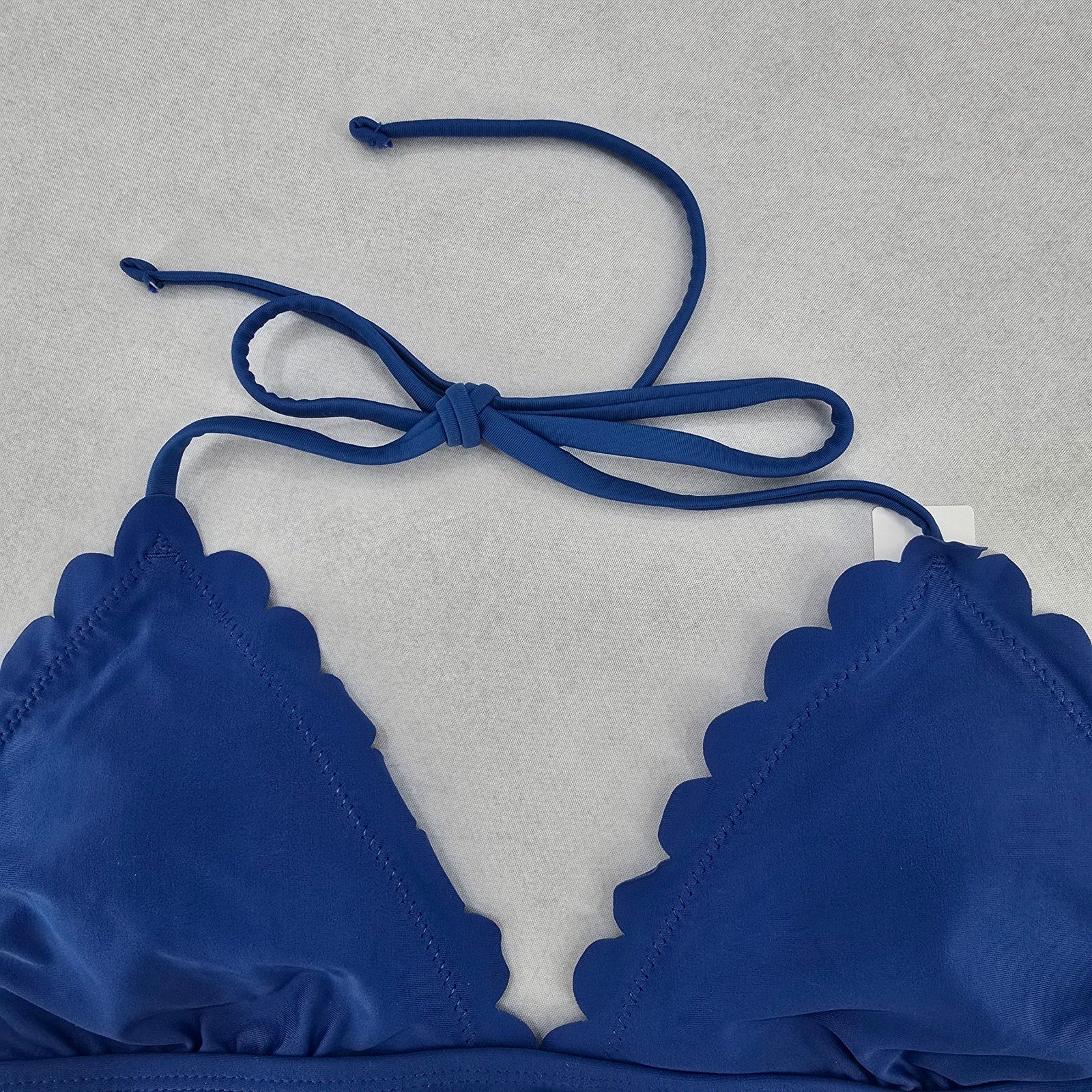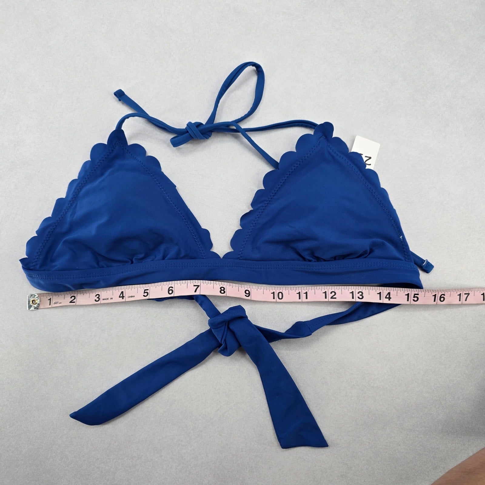 Shekini Blue Scallop Halter Tie Padded Swim Sports Bra Beach Bikini Top M Medium