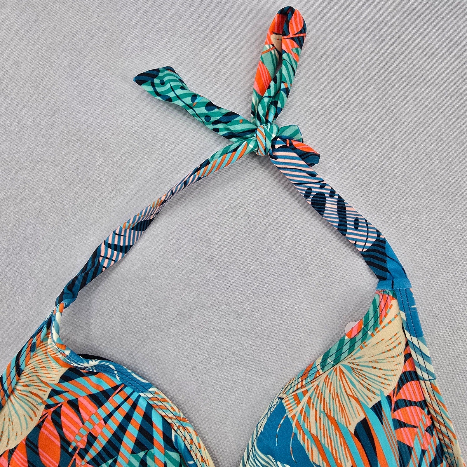 Sun & Sea Green Tropical Padded Tie Swim Sports Bra Beach Bikini Top M Medium