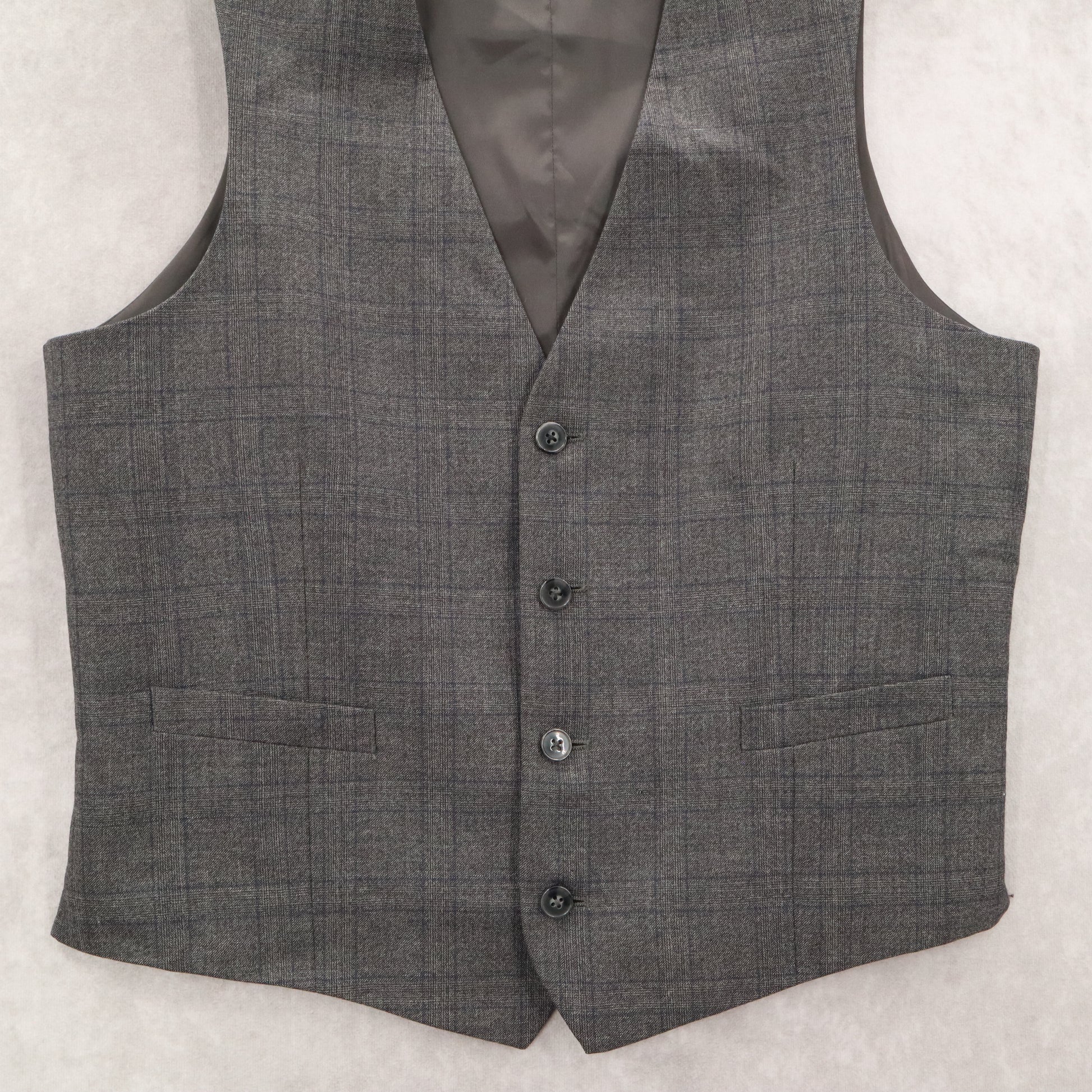Gray Plaid 5 Button Straight Bottom Waistcoat Formal Tuxedo Suit Vest 39S Small