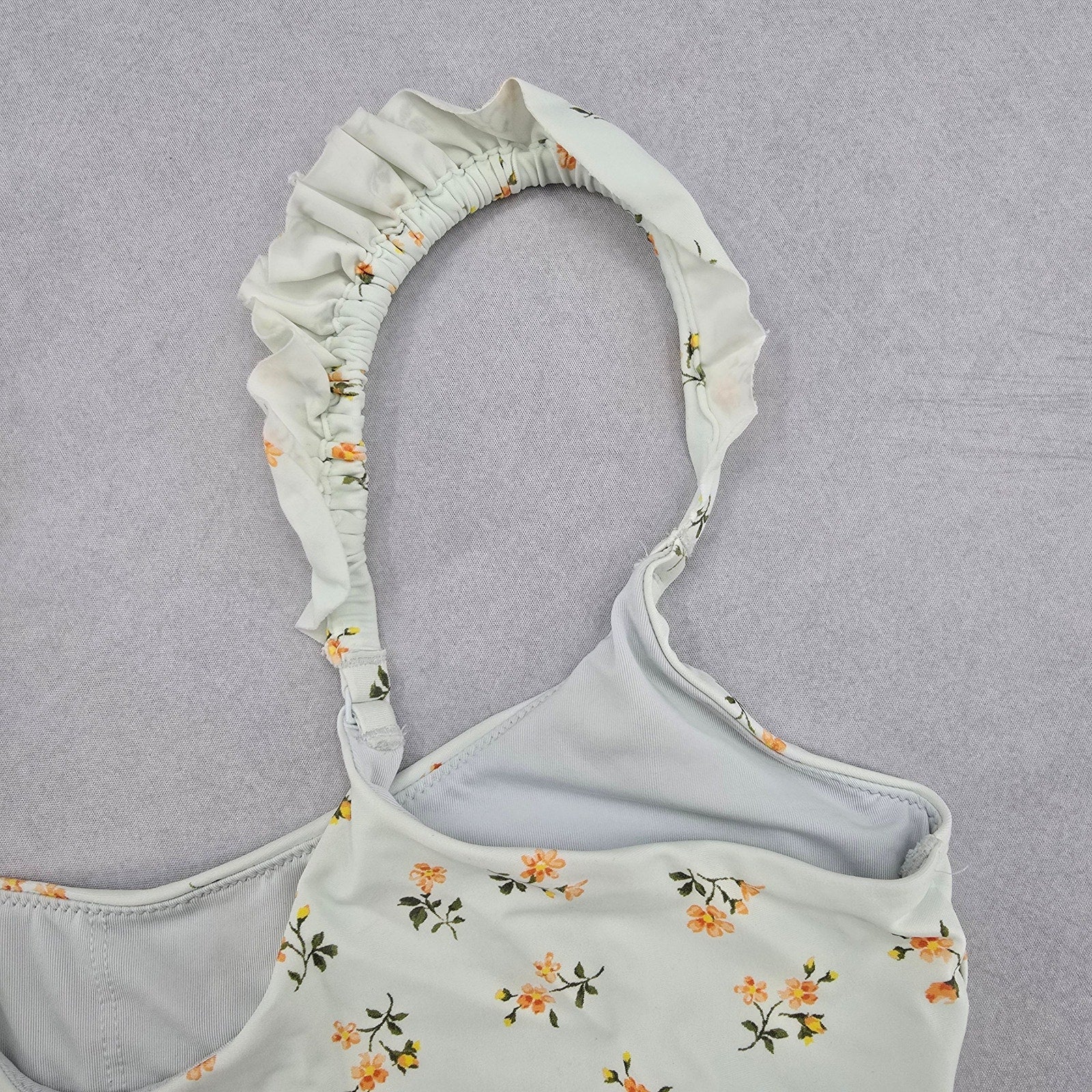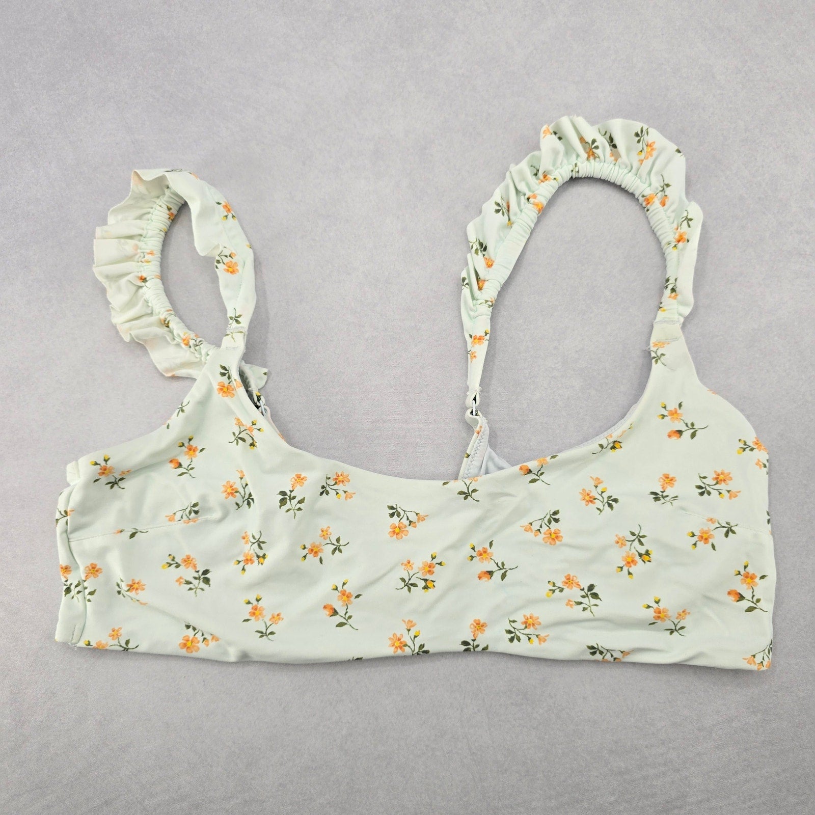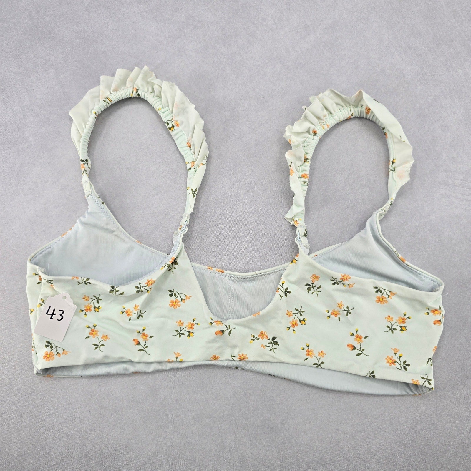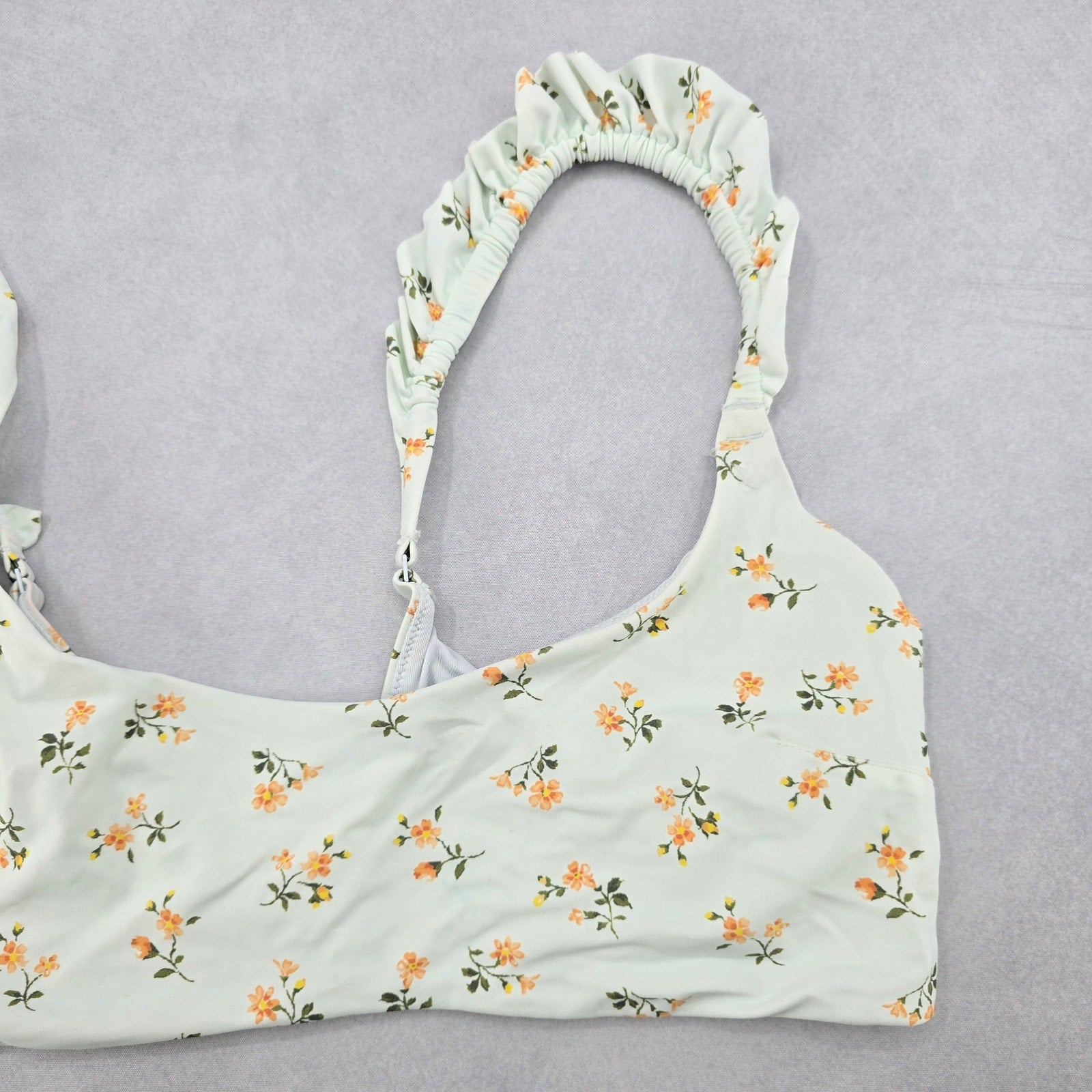 White Floral Ruffle Beach Sports Active Bikini Bralette Swim Top S Small