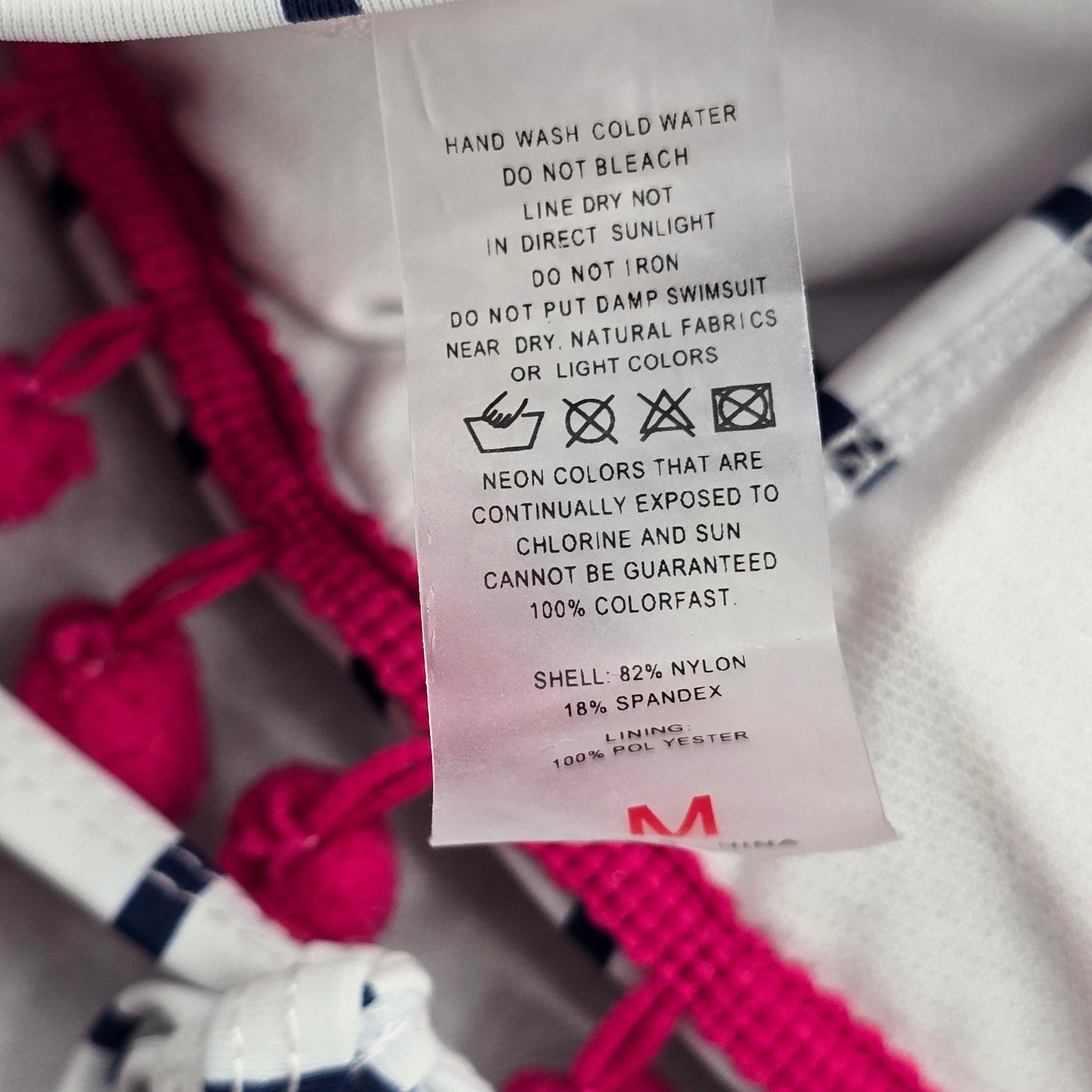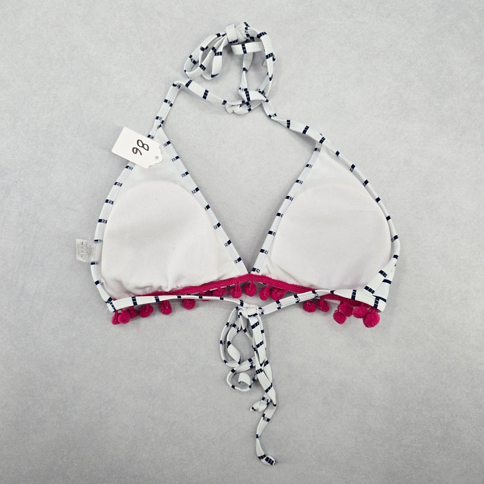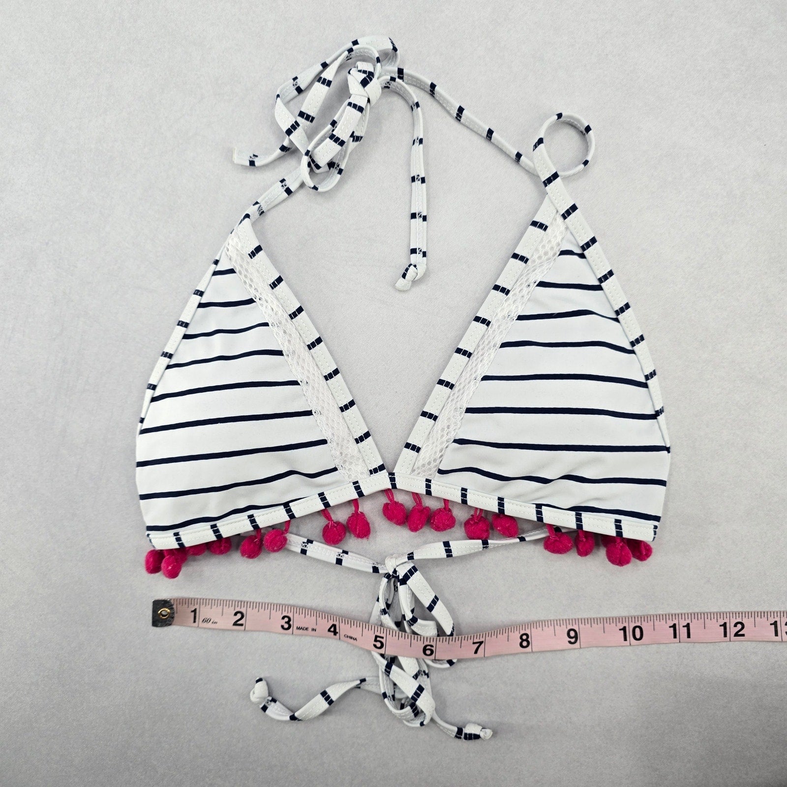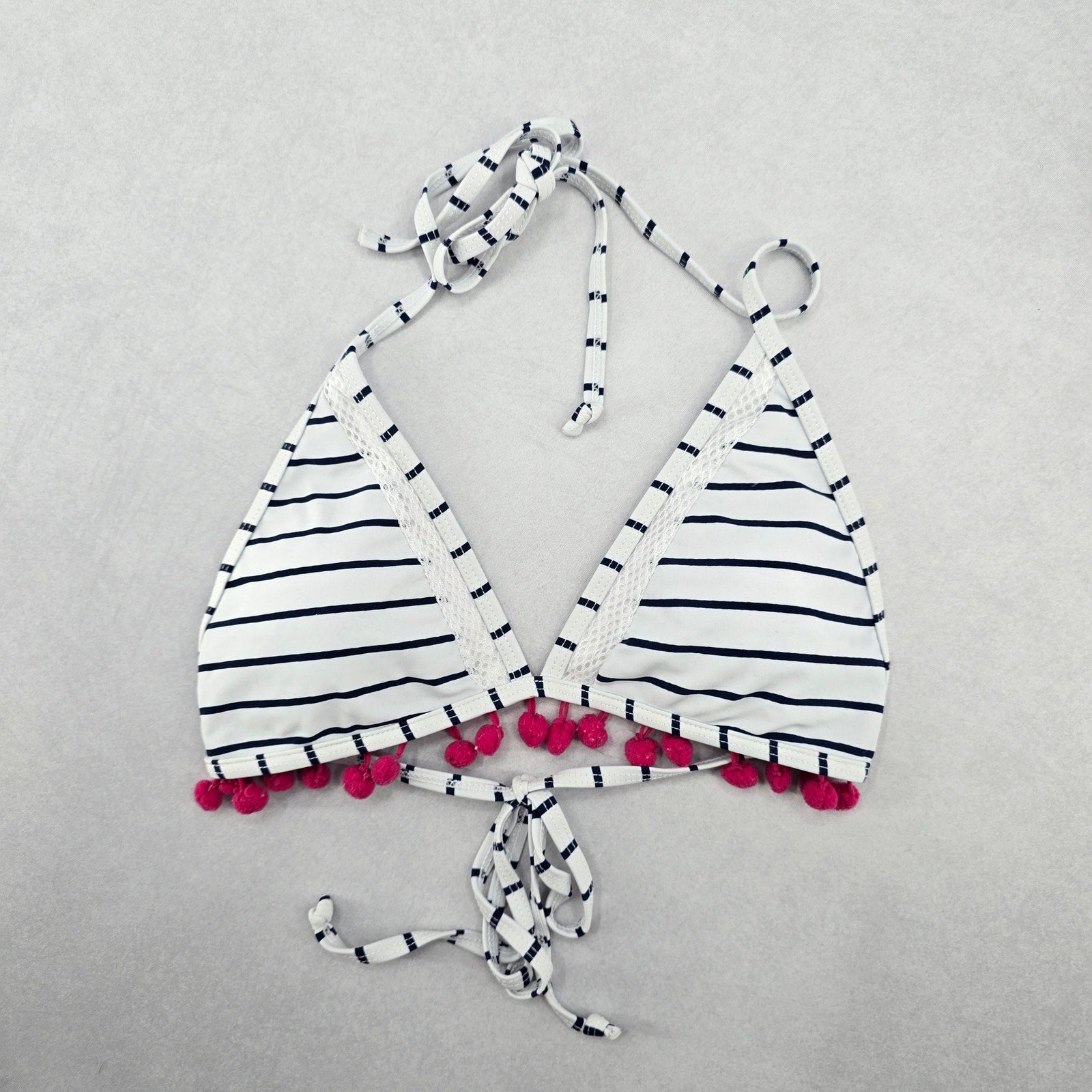 White Stripe Boho Pink Halter Tie Swim Sports Bra Beach Bikini Top M Medium