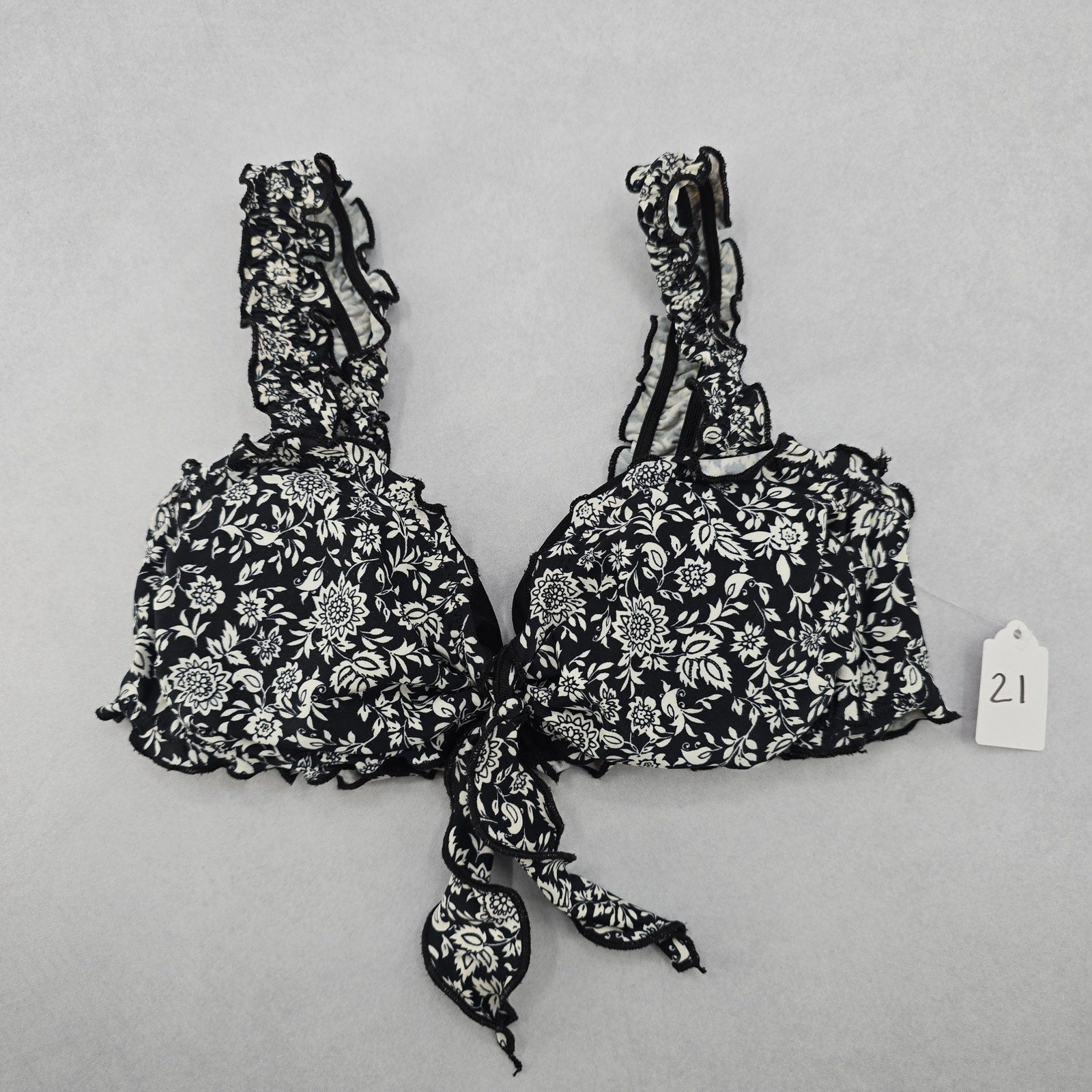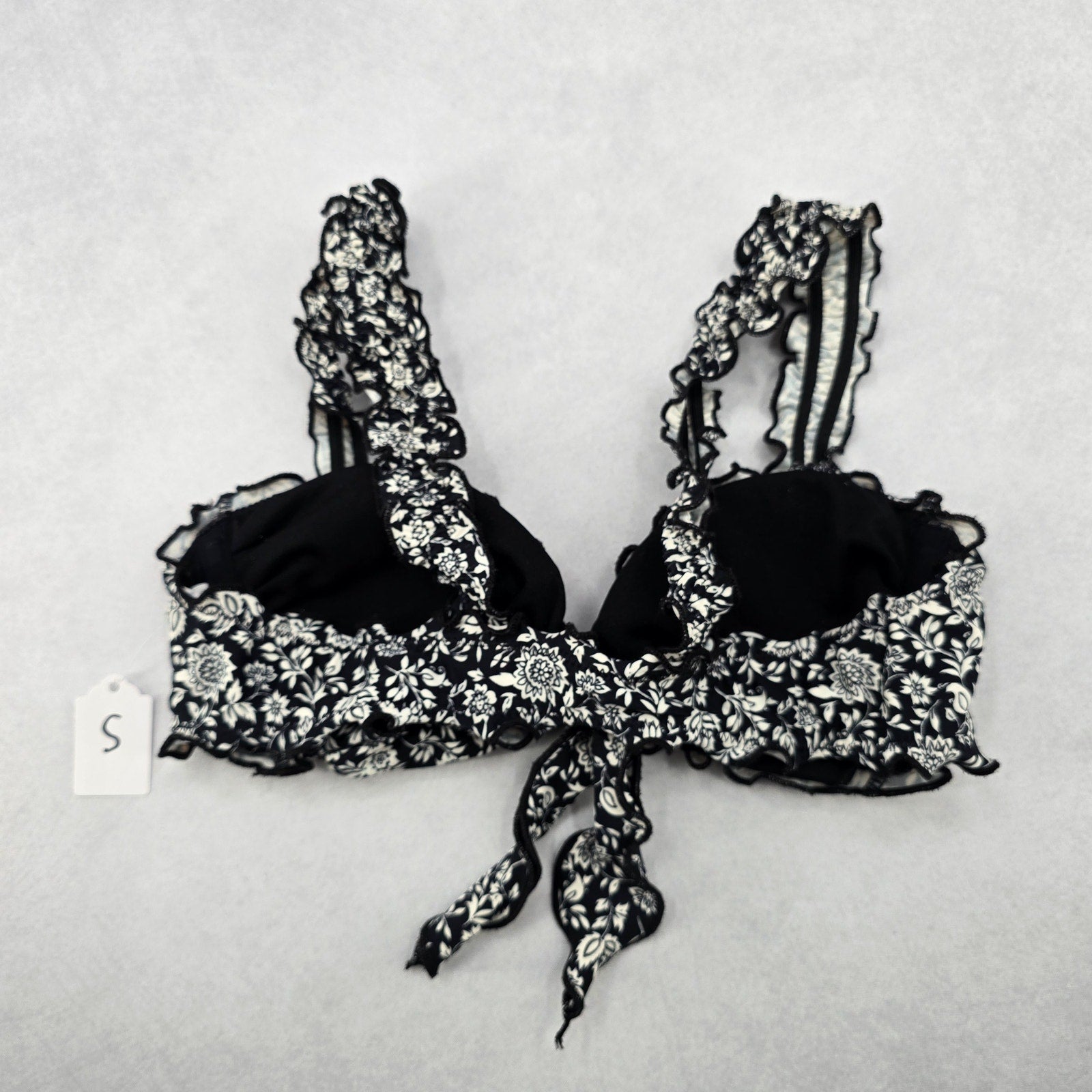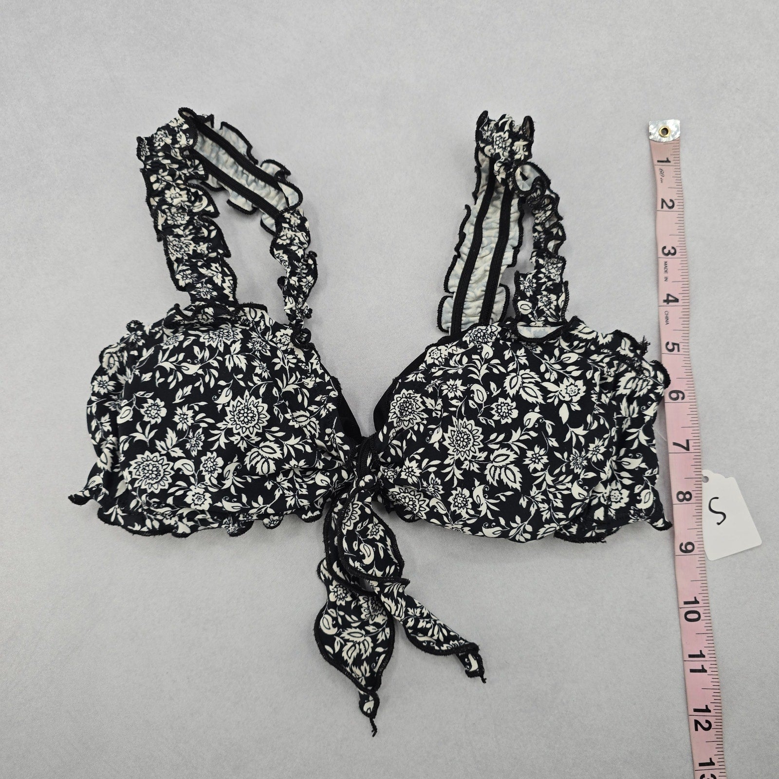 Xhilaration Black Floral Ruffle Beach Tie Bra Bikini Bralette Swim Top S Small