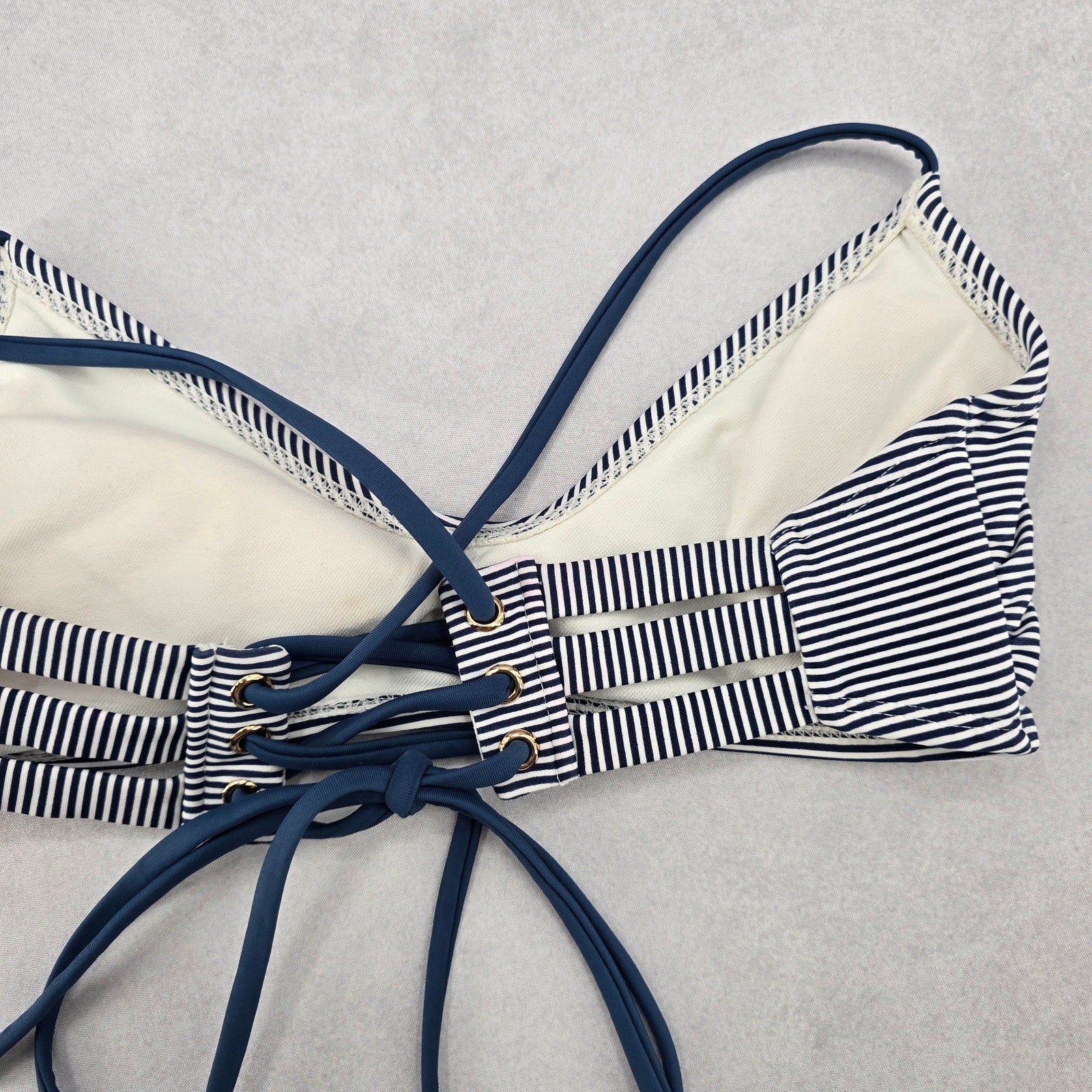 Xhilaration Blue Stripe Crisscross Padded Tie Bikini Bralette Swim Top S Small