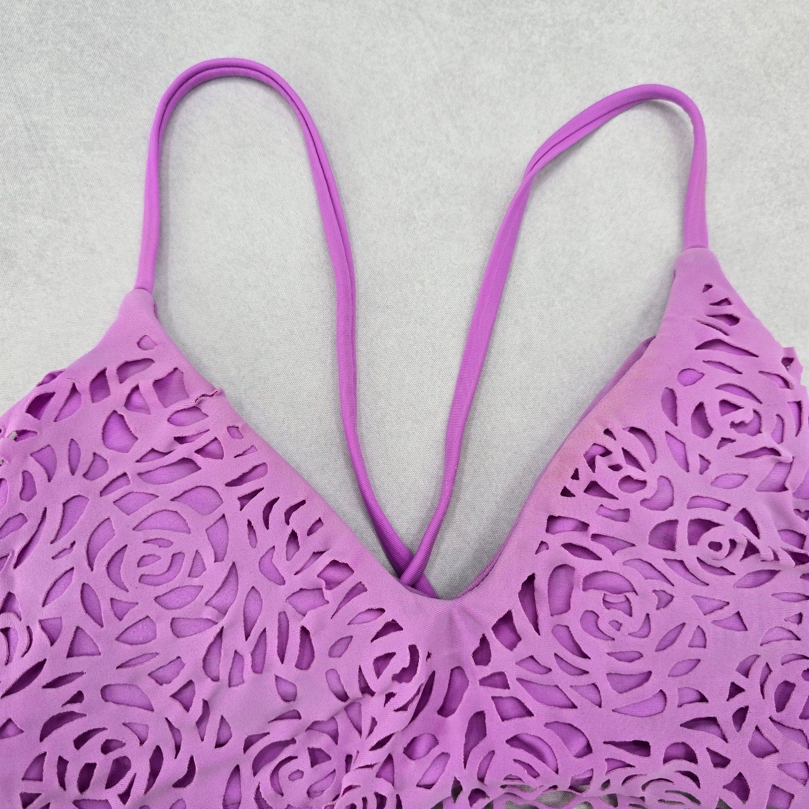 Xhilaration Purple Boho Crisscross Cutout Floral Bikini Bra Swim Top S Small